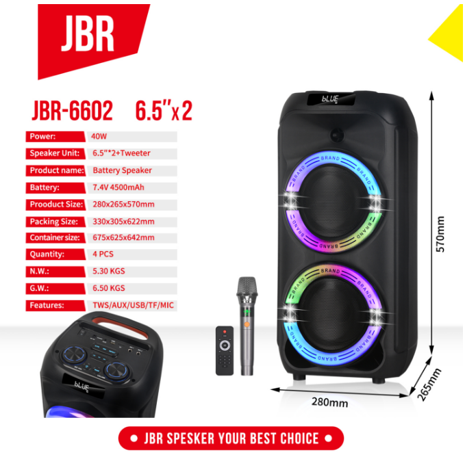 jbr-6602 double 6.5-inch bluetooth audio 中文版