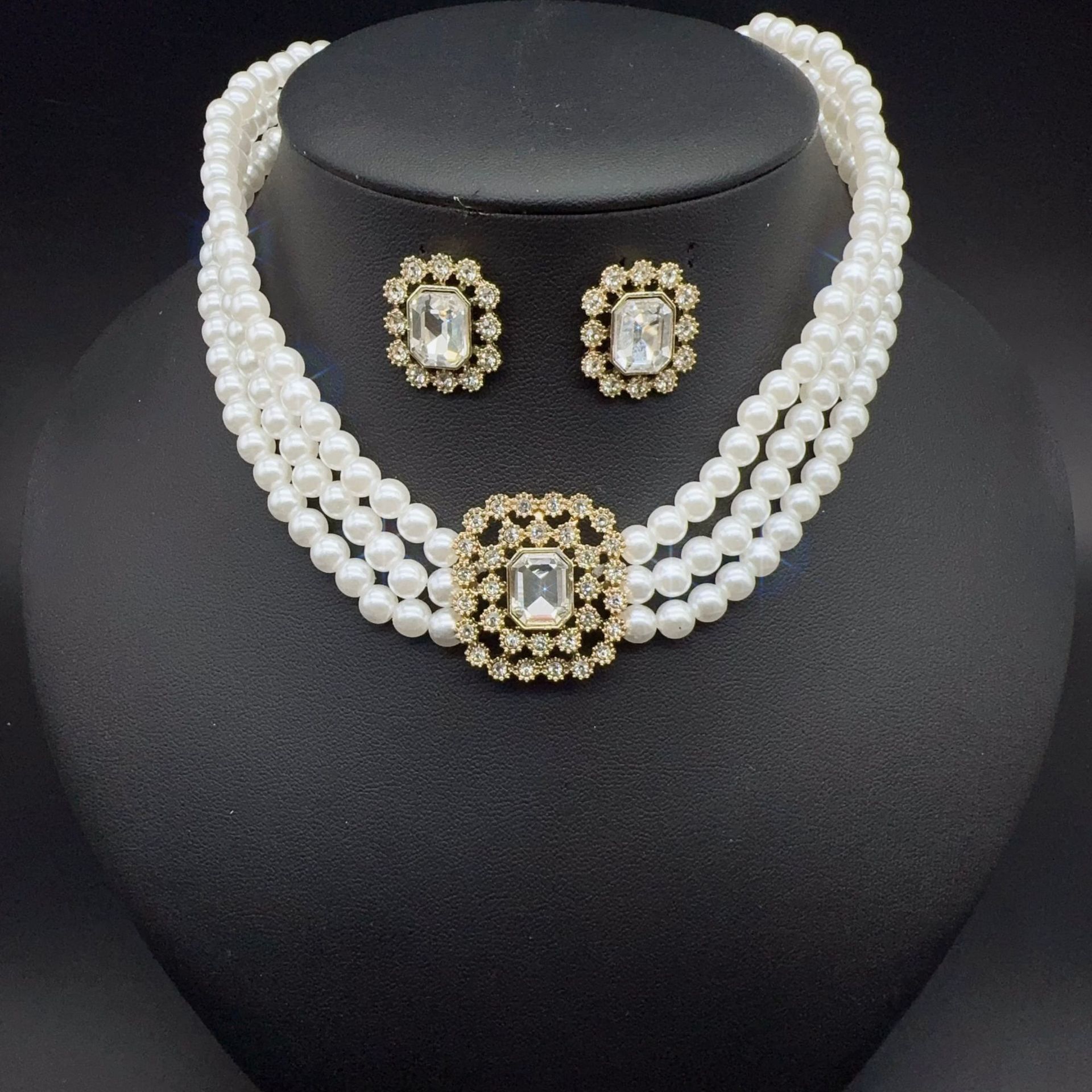 white multi-layer necklace and earring suit