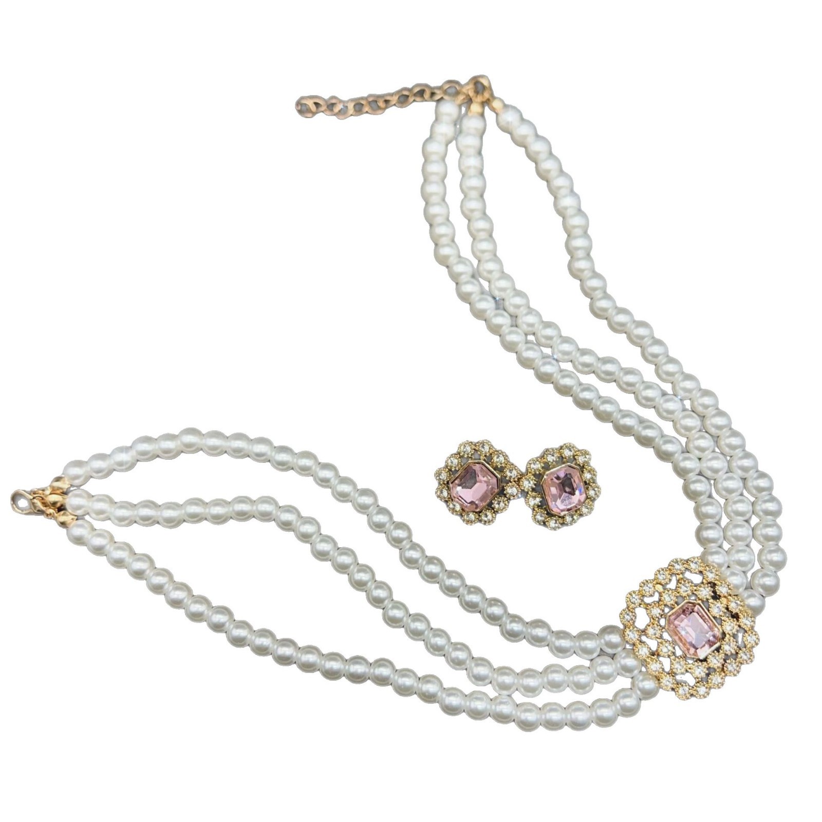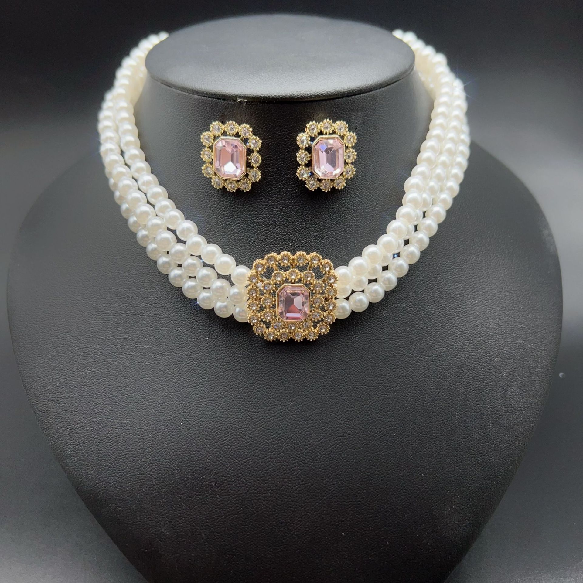pink multi-layer necklace and earring suit