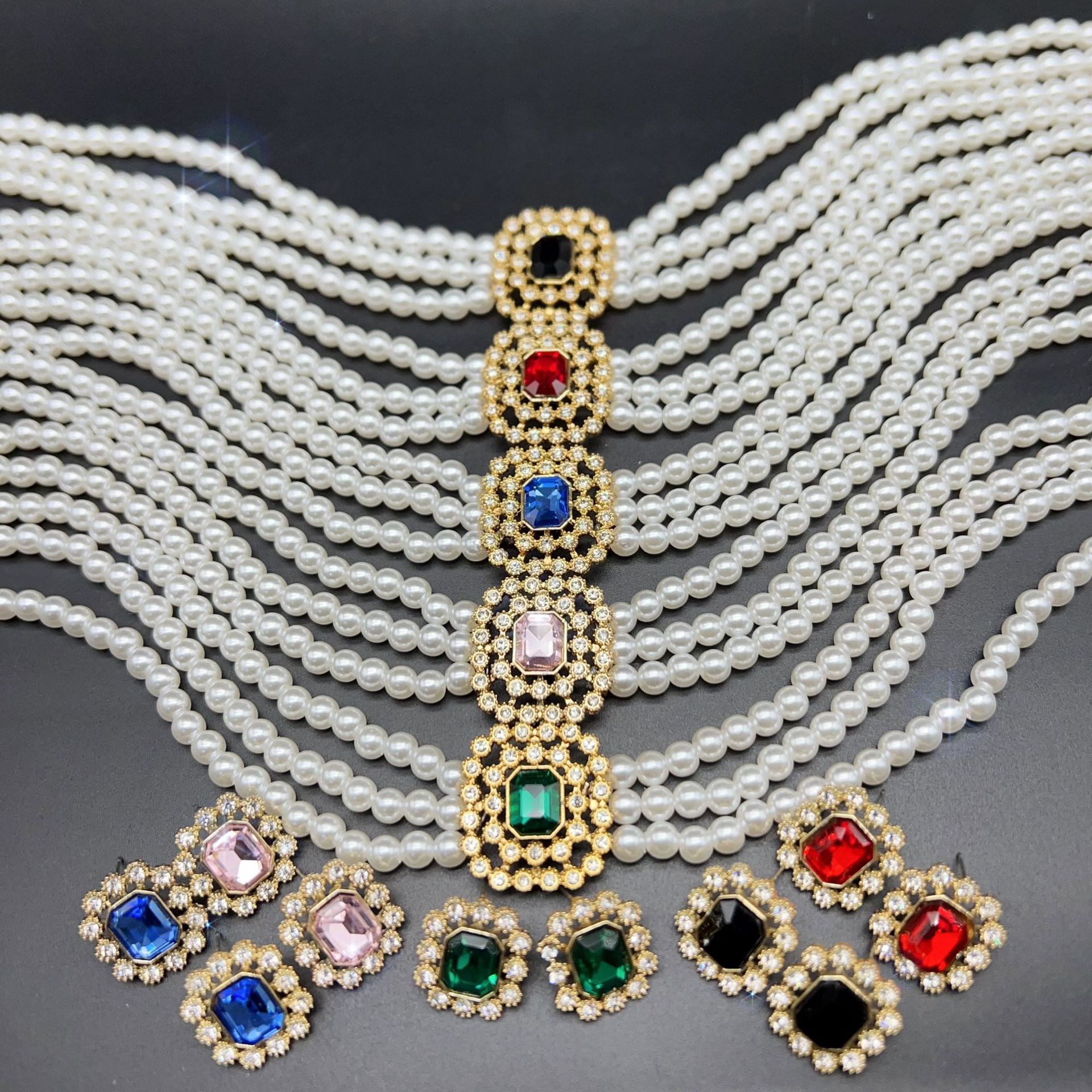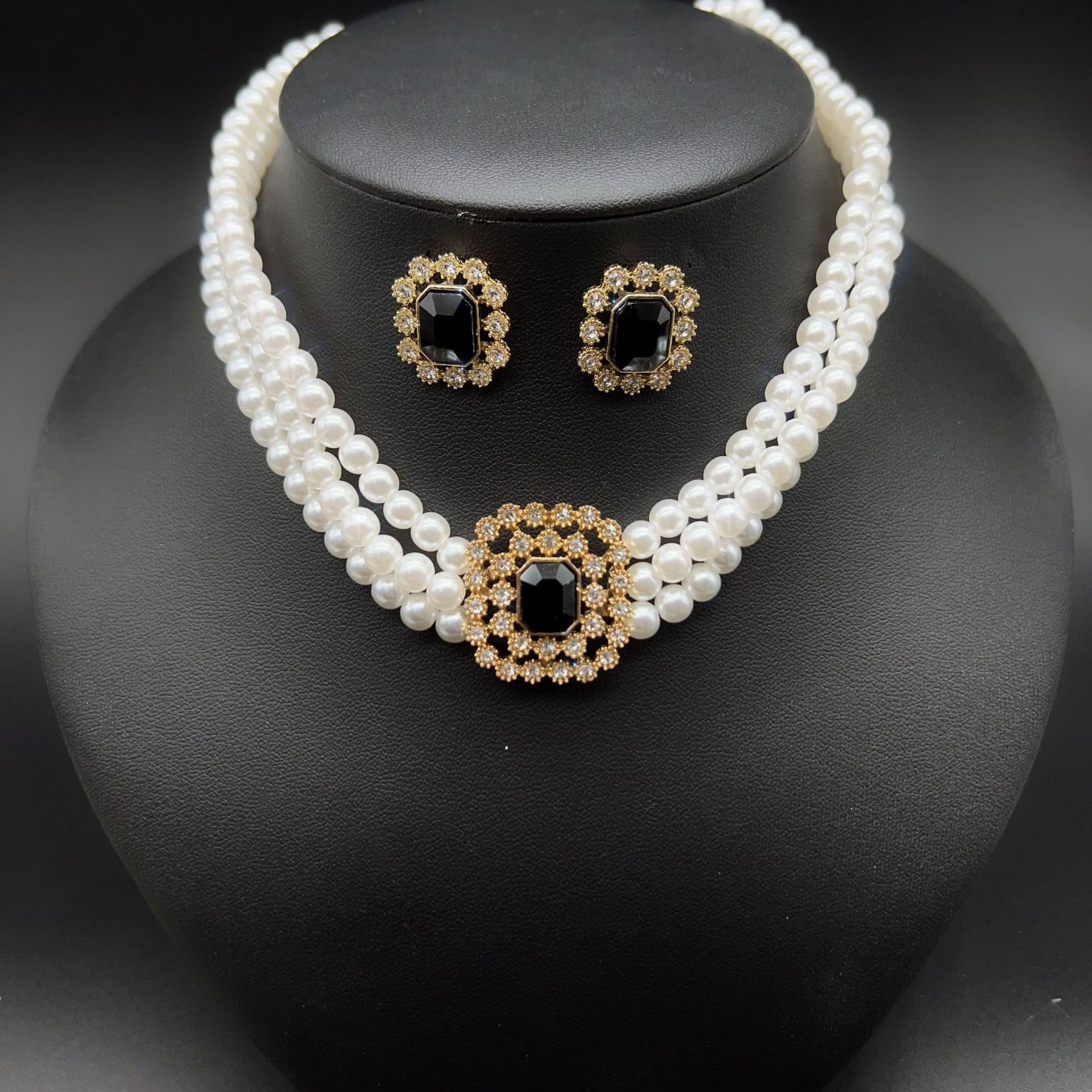 black multi-layer necklace and earring suit