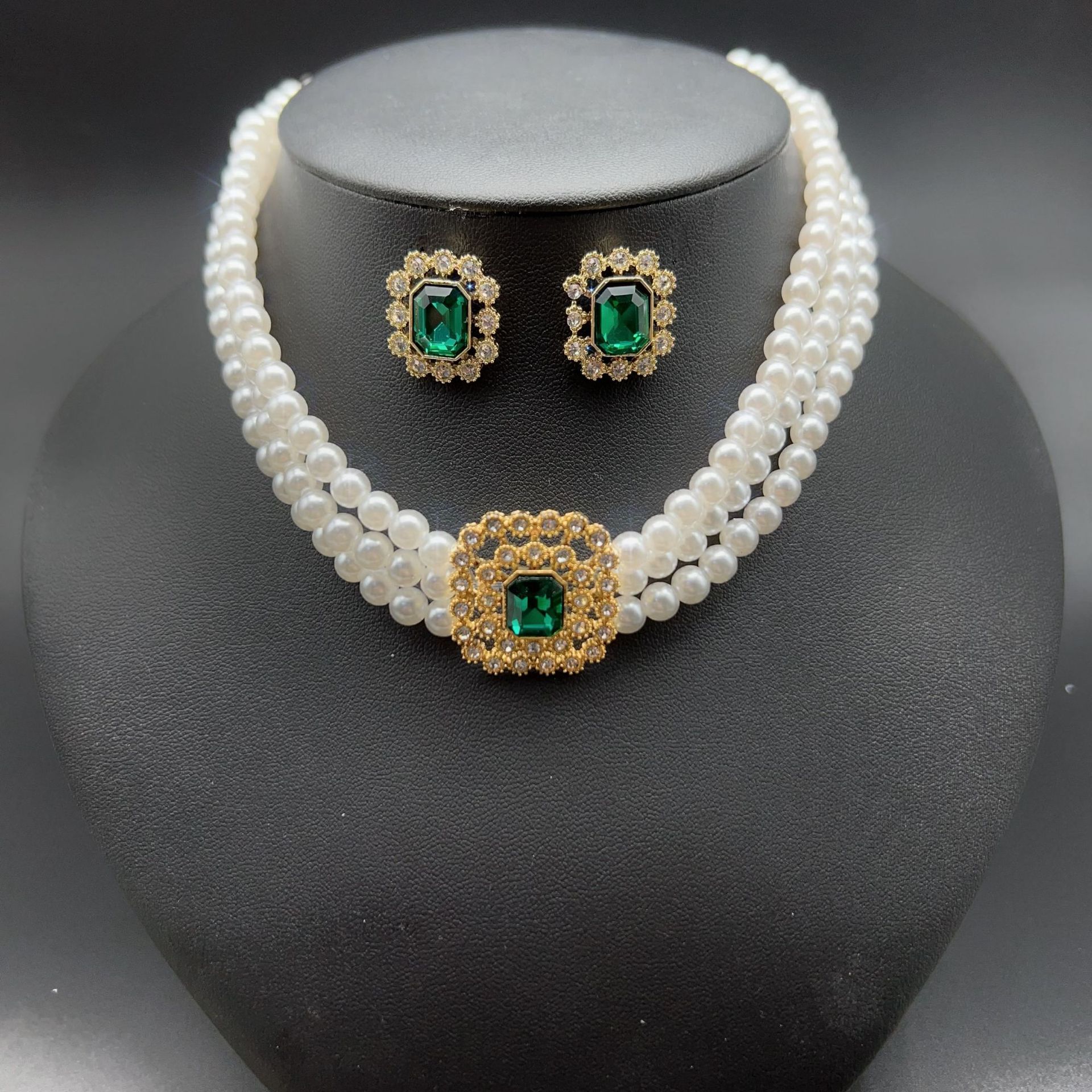 green multi-layer necklace and earring suit