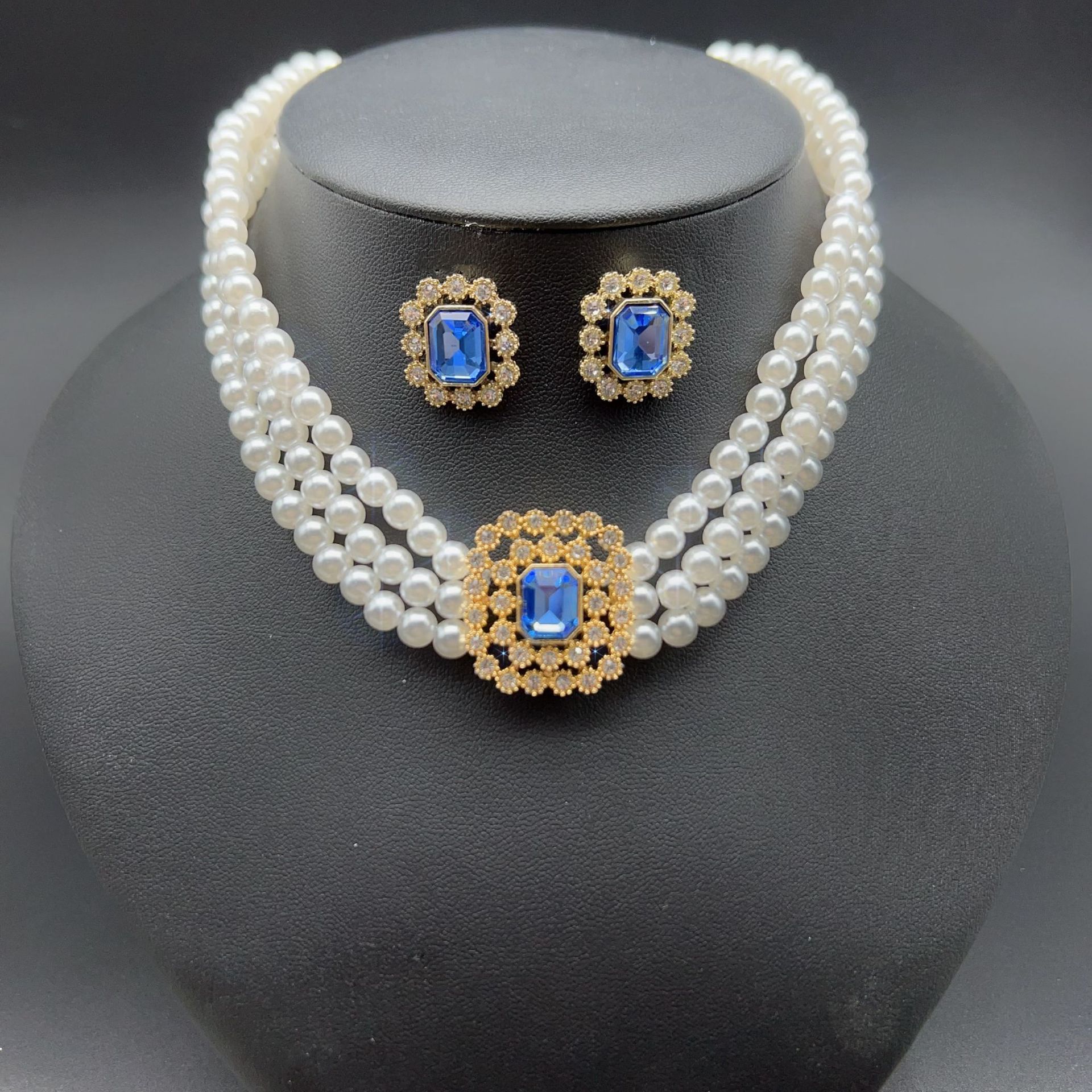 blue multi-layer necklace and earring suit