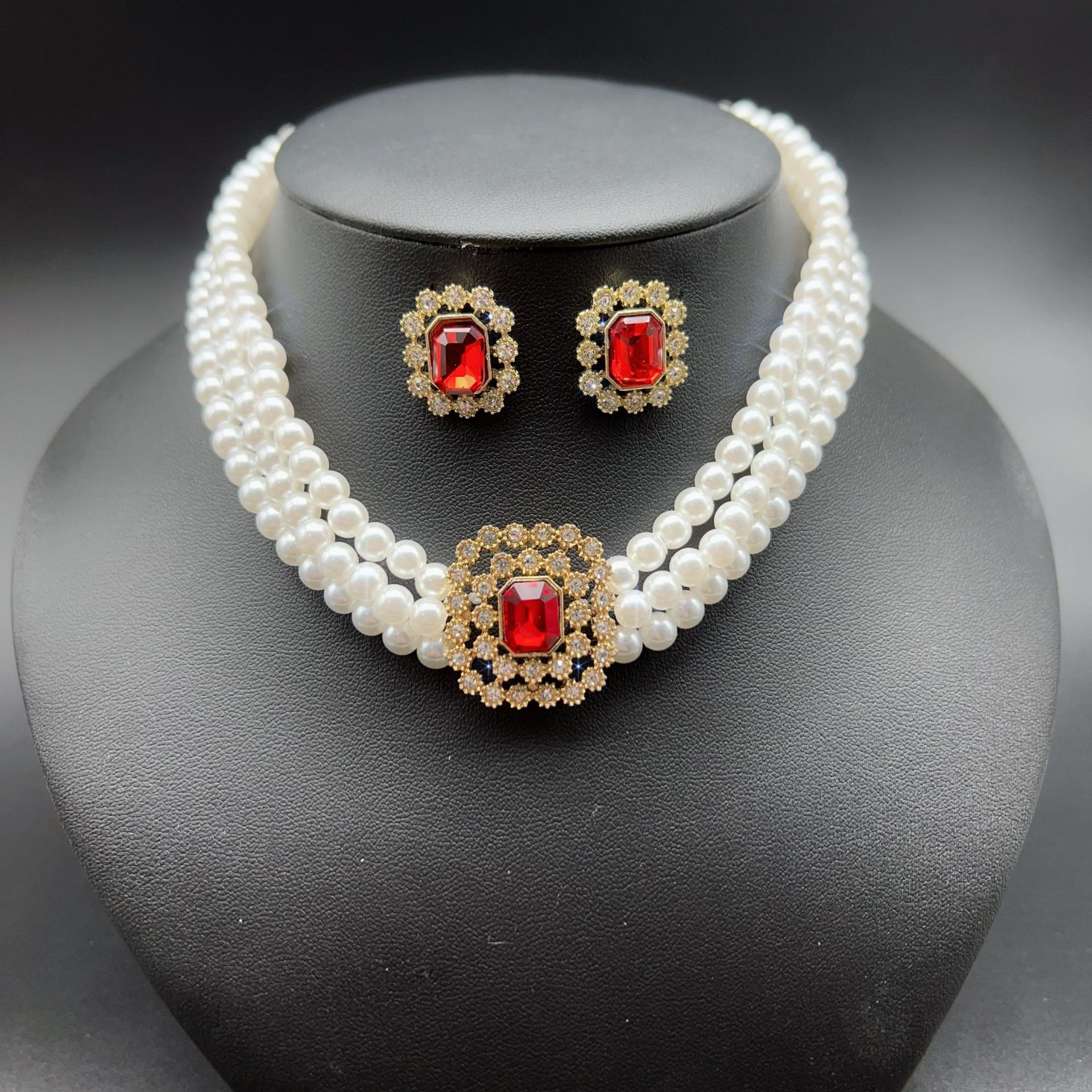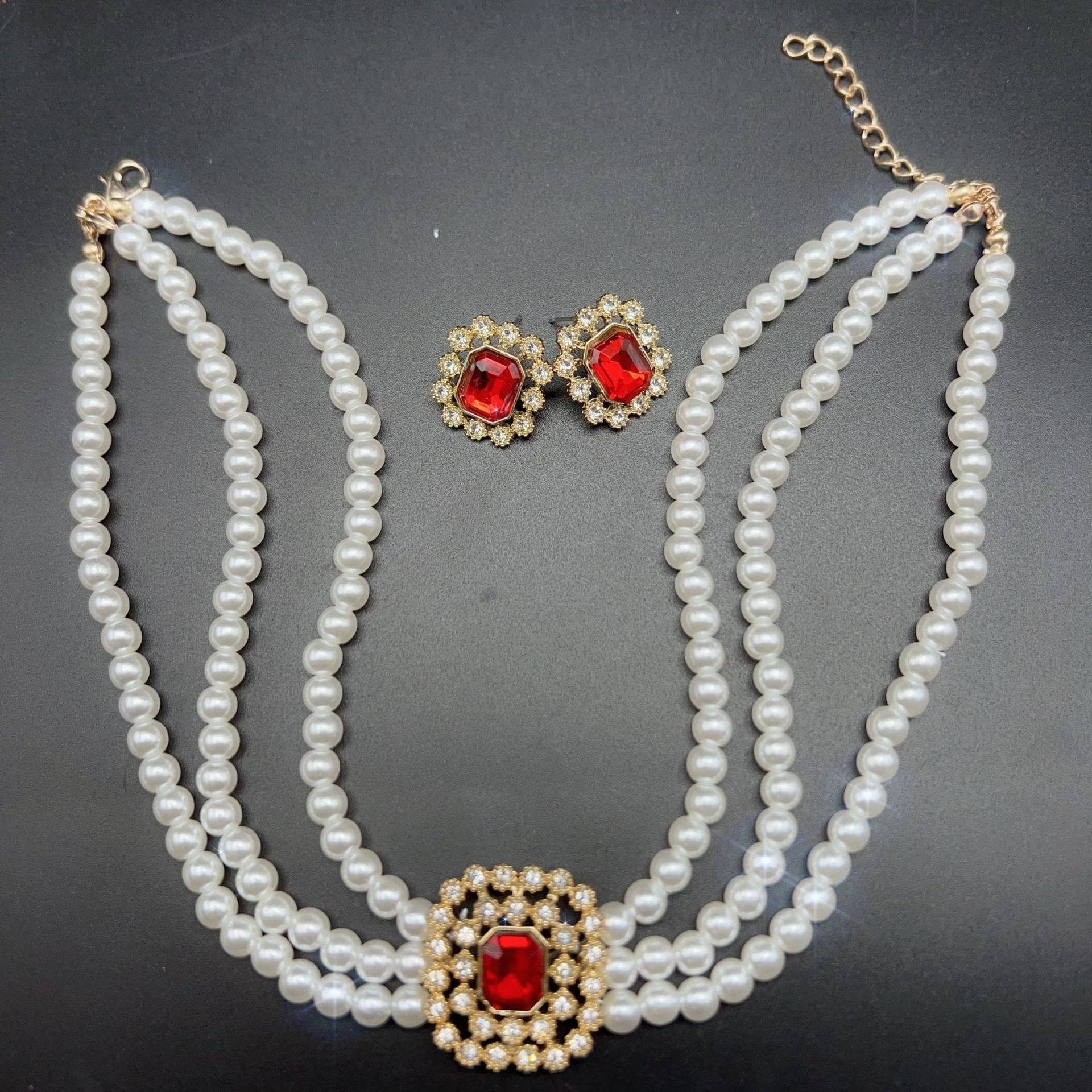 red multi-layer necklace and earring suit