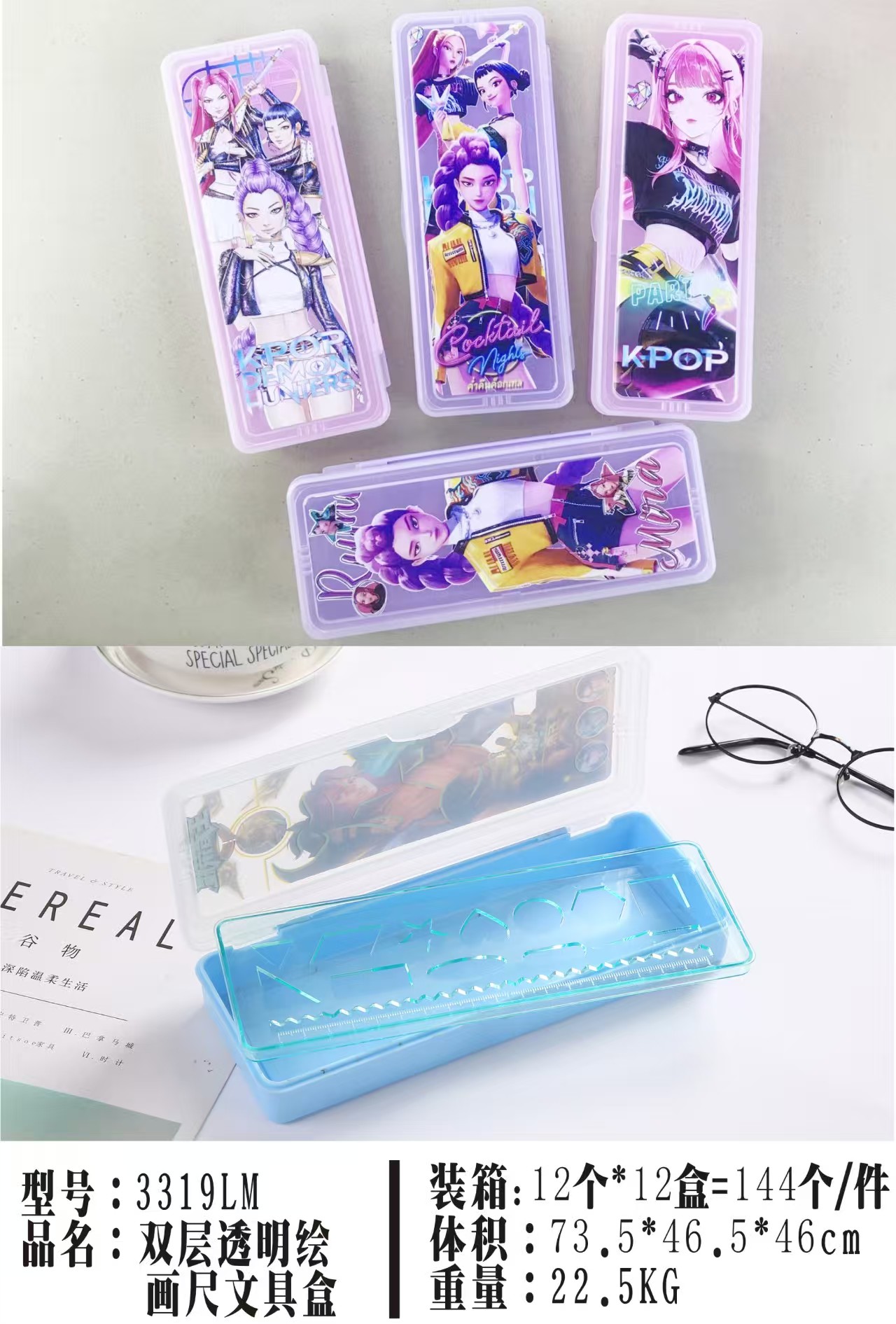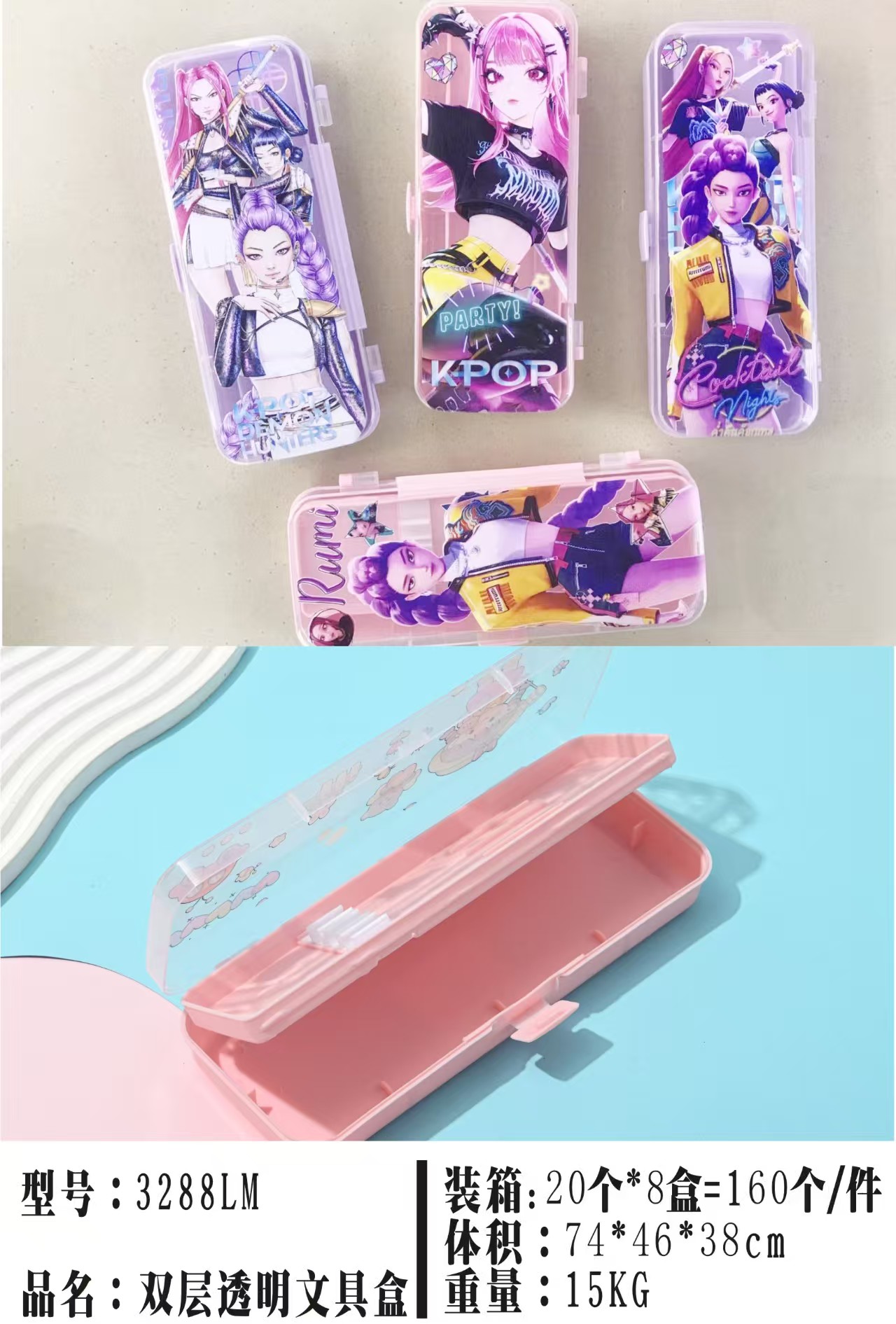 hunting devil women's team cute multifunctional stationery box pencil case female devil women's team primary school student double storage transparent new 中文版