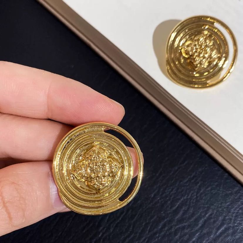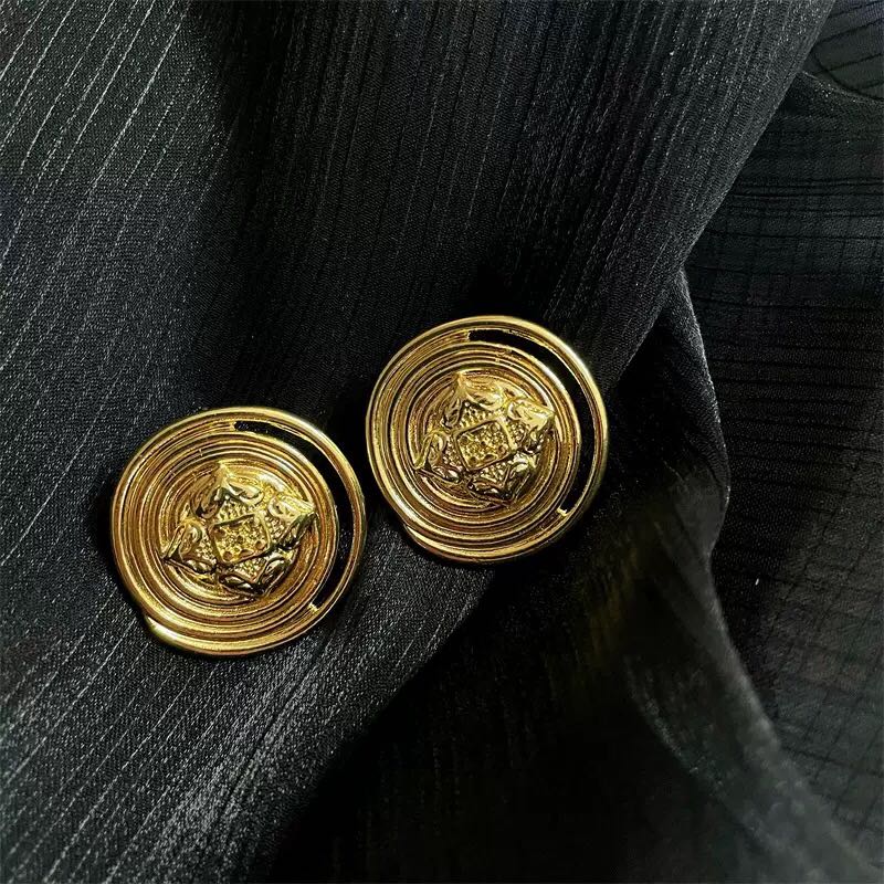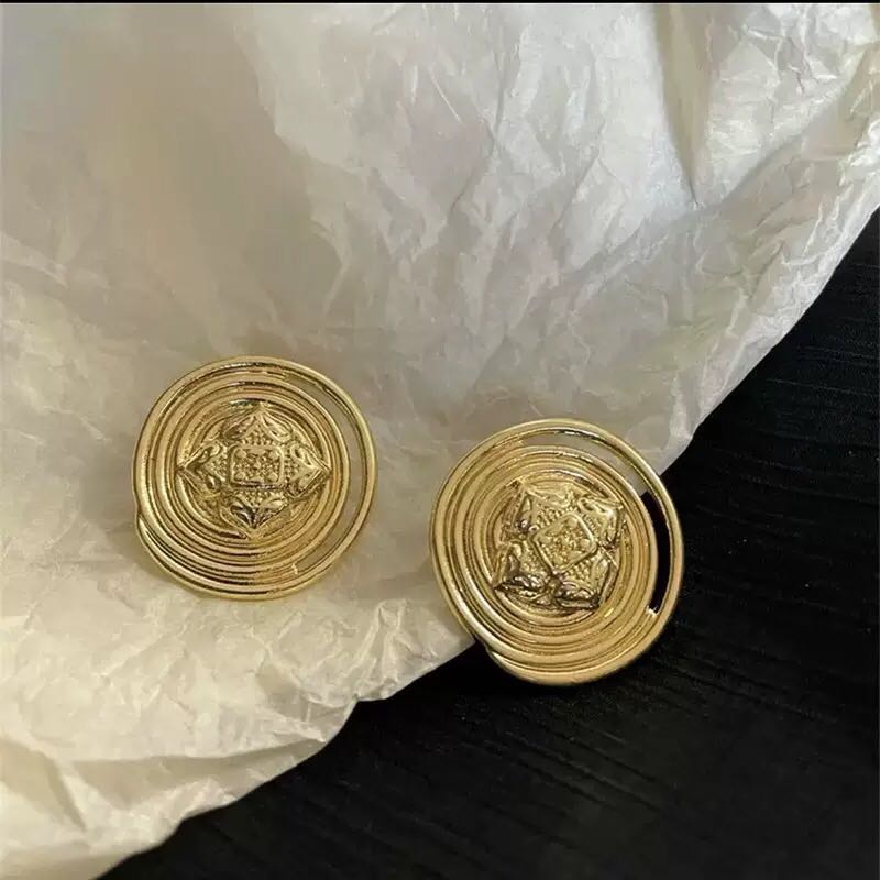 golden, round earrings retro high sense niche design stud earrings maillard earrings for women 中文版