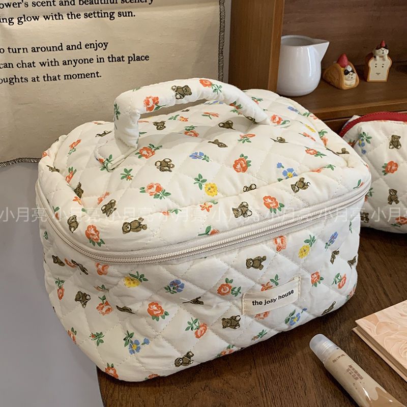 floral bear cosmetic bag large