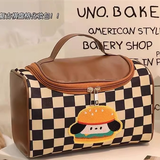 hamburger dog chessboard grid cosmetic bag [large capacity]]
