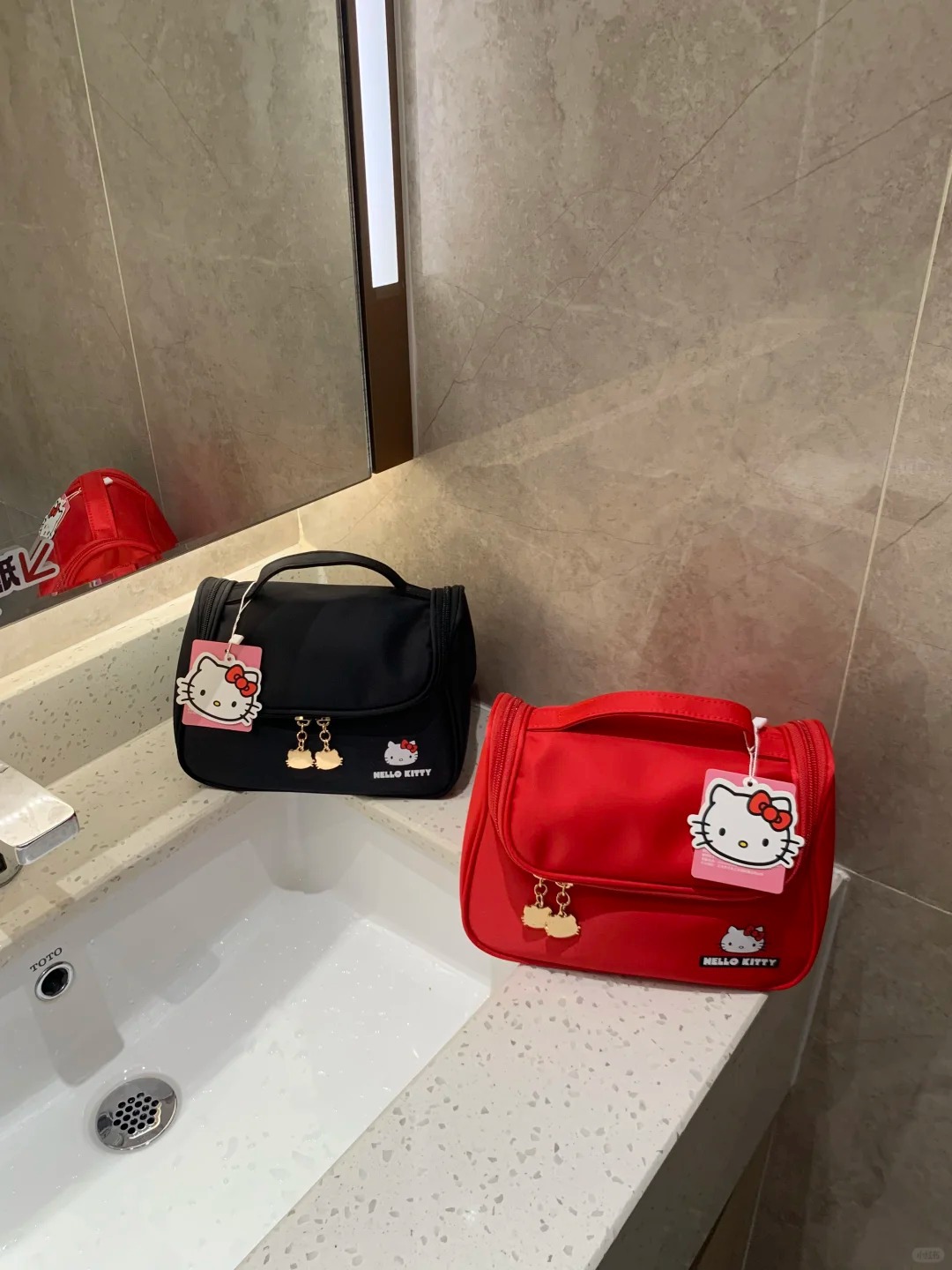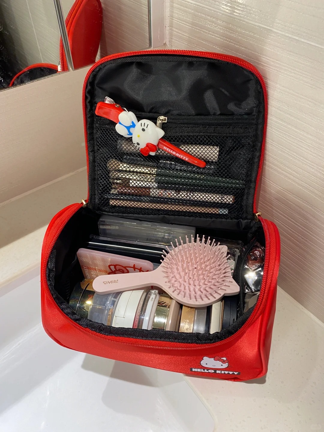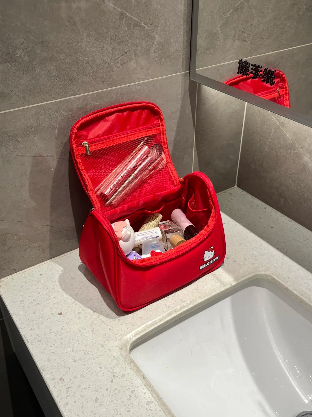 red hello kitty cosmetic bag [compartment storage]]