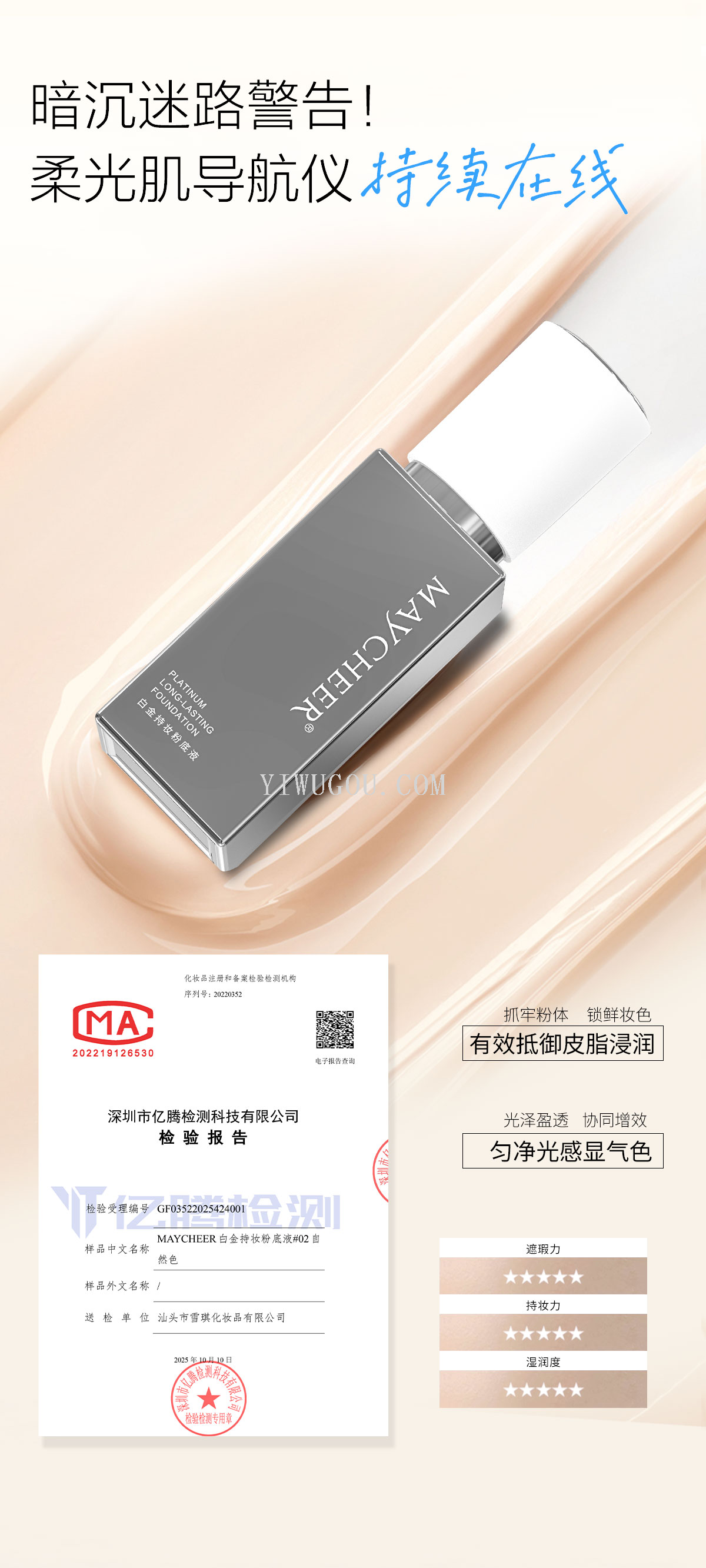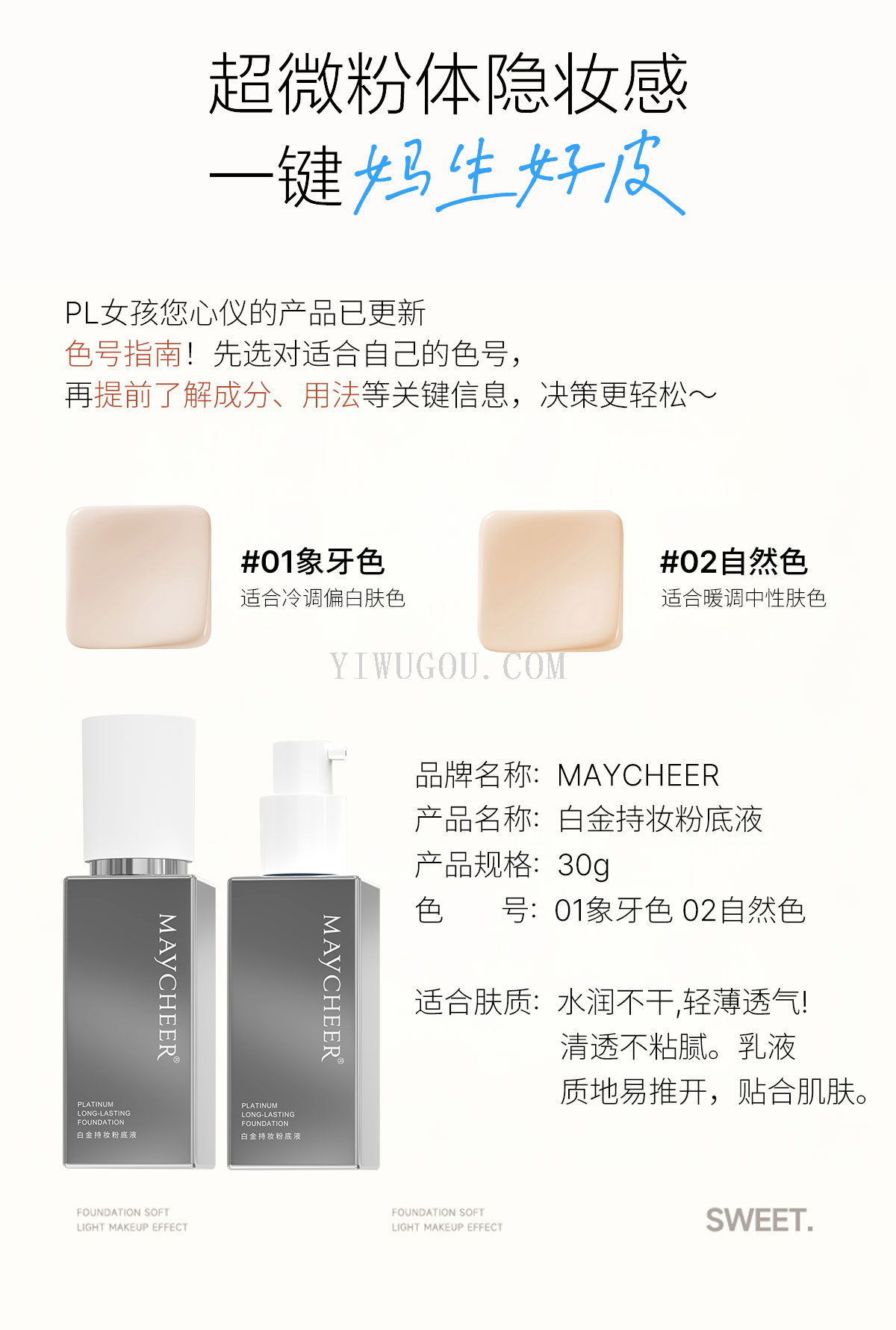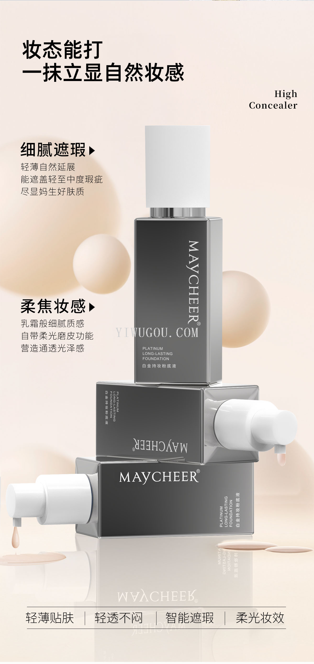 maycheer platinum longwear foundation moisturizing concealer high-end foundation oil control invisible pore makeup foundation for women 中文版