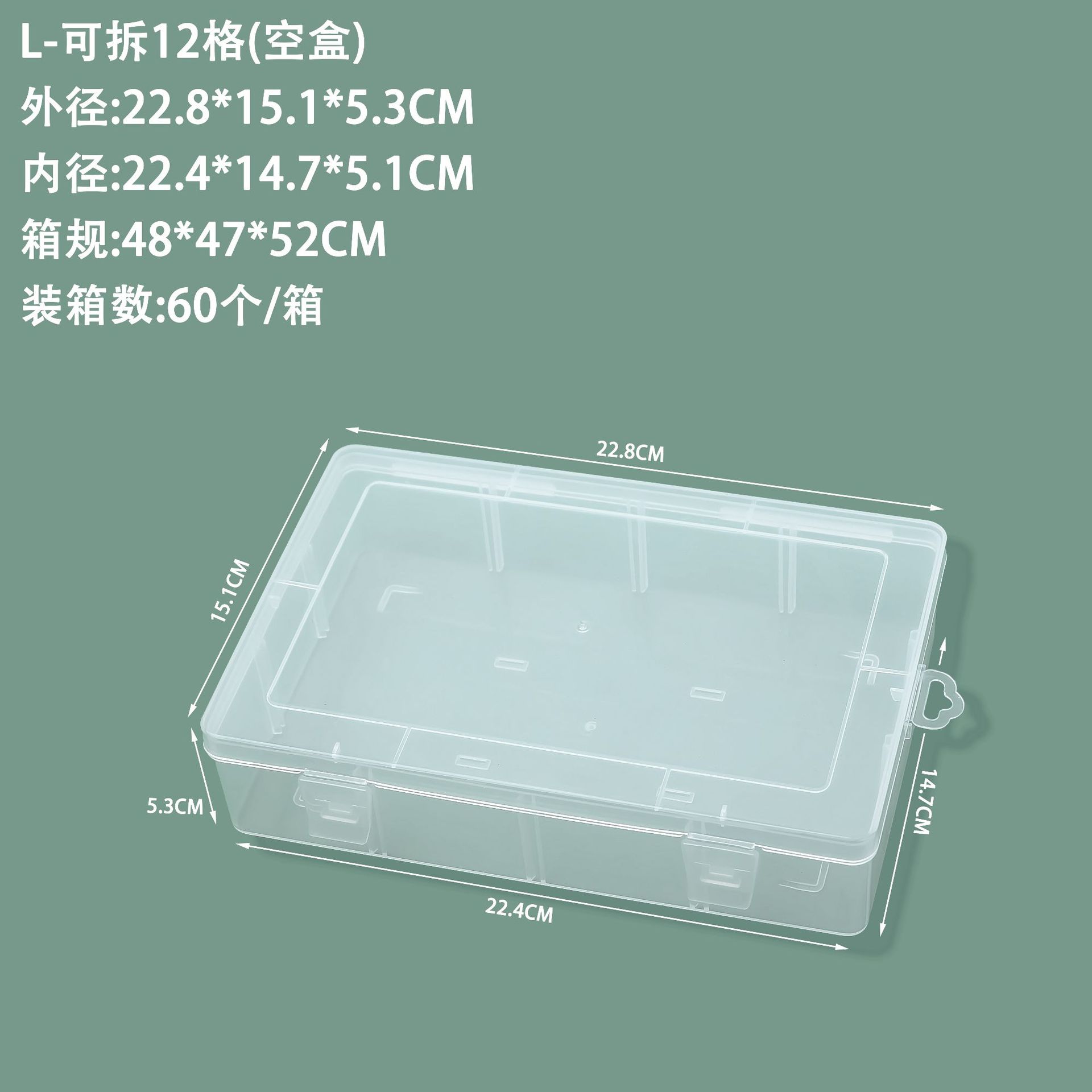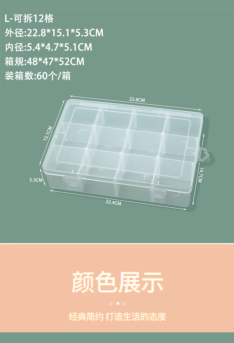 L-Dismountable 12 Compartments (8 Compartments) Outer Diameter: 22.7*15.1*5.3CM