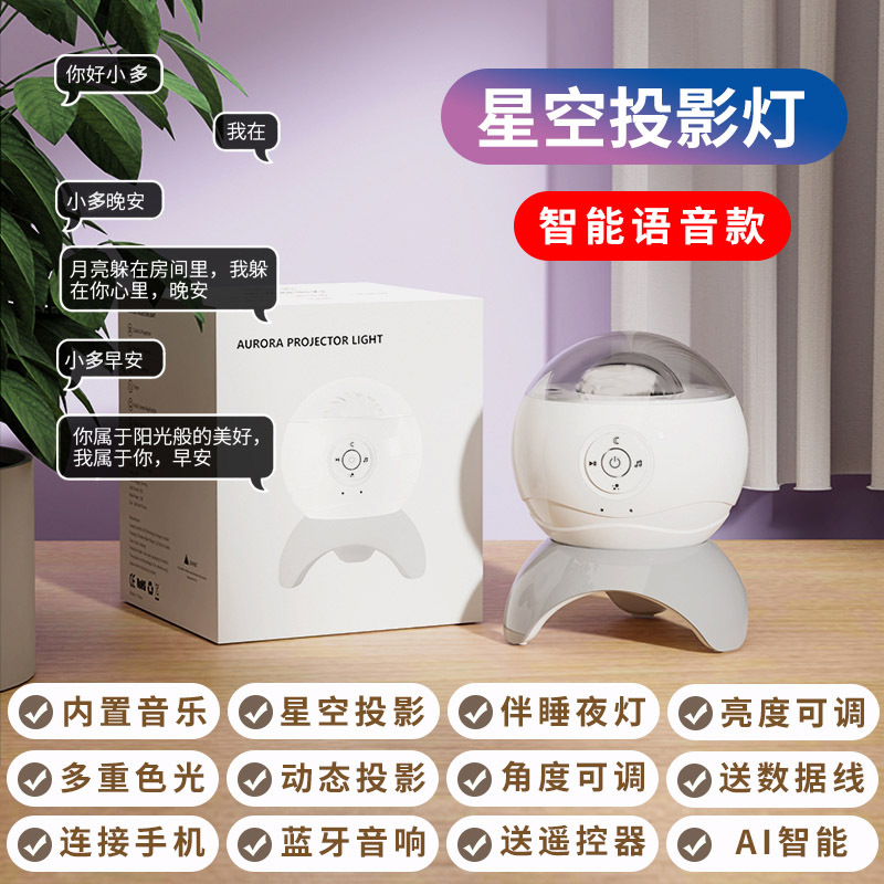Product features: Timer, dimming, aurora, laser, moon, dynamic projection, voice control, Bluetooth speaker, remote control, night light.
