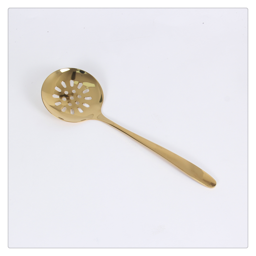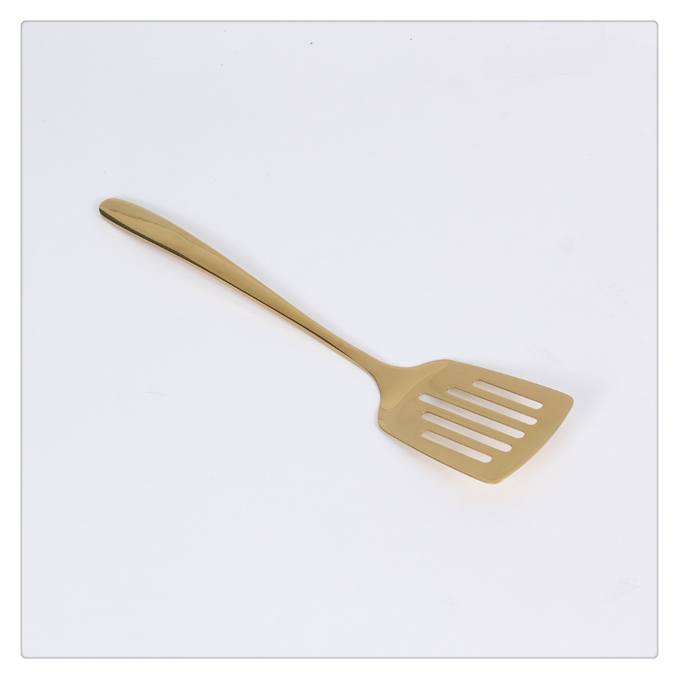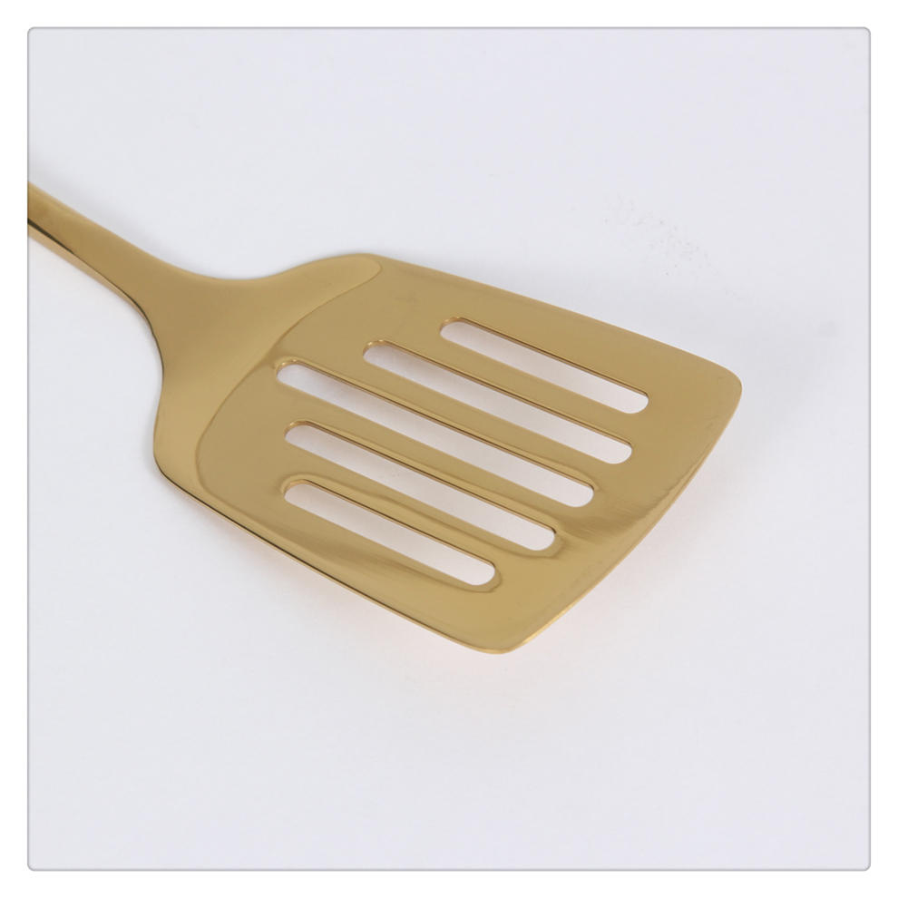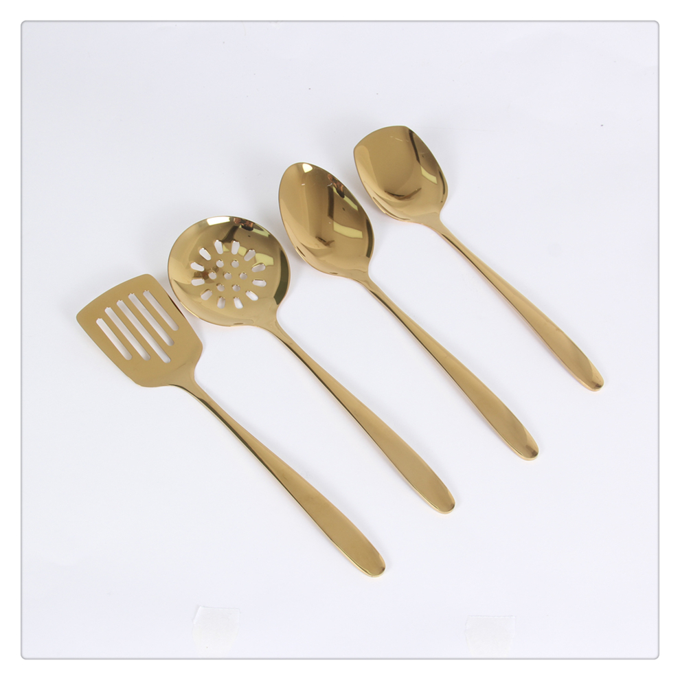 Product Name: Titanium Gold Stainless Steel Kitchenware Set - Home Use Flat Spatula, Shallow Potato Slicer, Dumpling Ladle, Long-Handle Spoon, and Vegetable Spreader