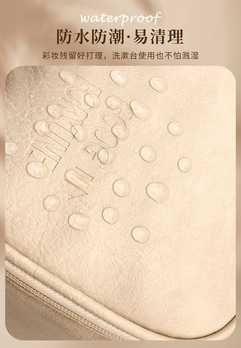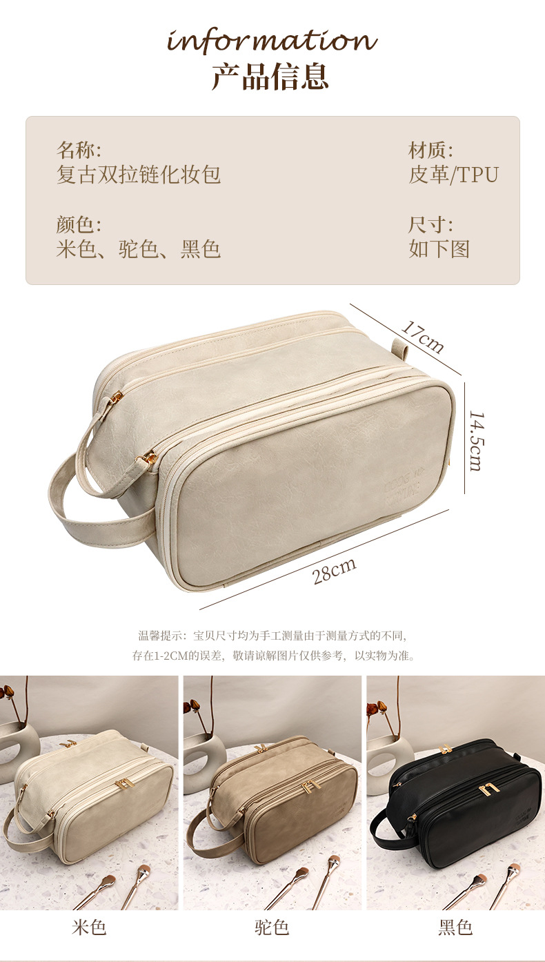 thickened multi-layer double zipper dark pattern-beige large size without words
