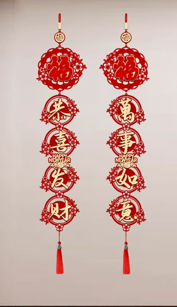 new living room television background wall pendant couplet chinese new year scene layout new year decorations 中文版