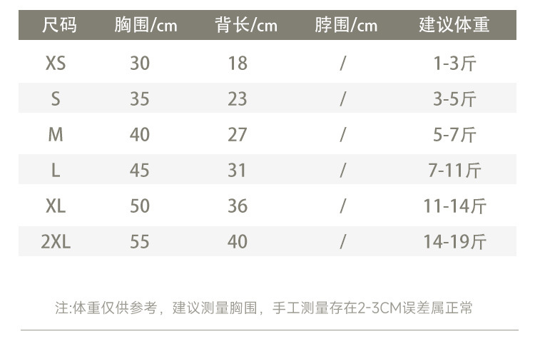 | size s chest 35 back 23 (1.50 kg-2.50 kg | CN¥ 0.0 | 1896 piece available |