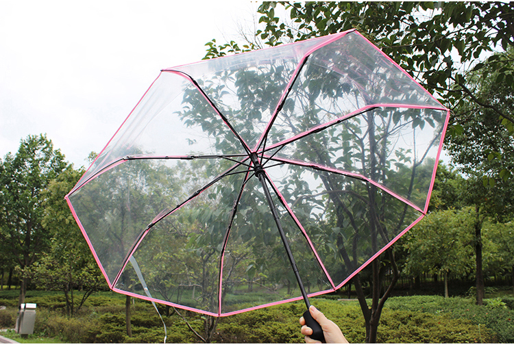 automatic transparent umbrella-pink umbrella with black handle
