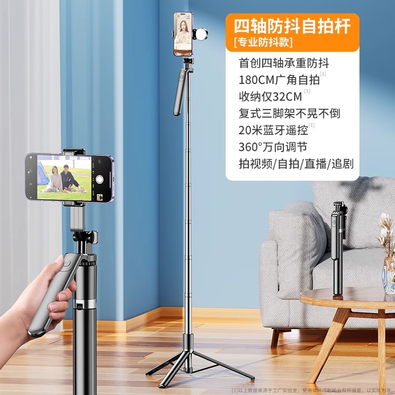 1.8 m [black] beauty double light/four-axis anti-shake/vlog handheld and shooting/stainless steel shaft/bluetooth remote control.