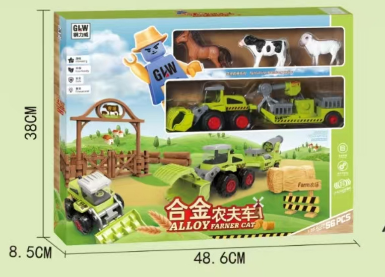 farm cart set-3 cars +3 animals + farm road