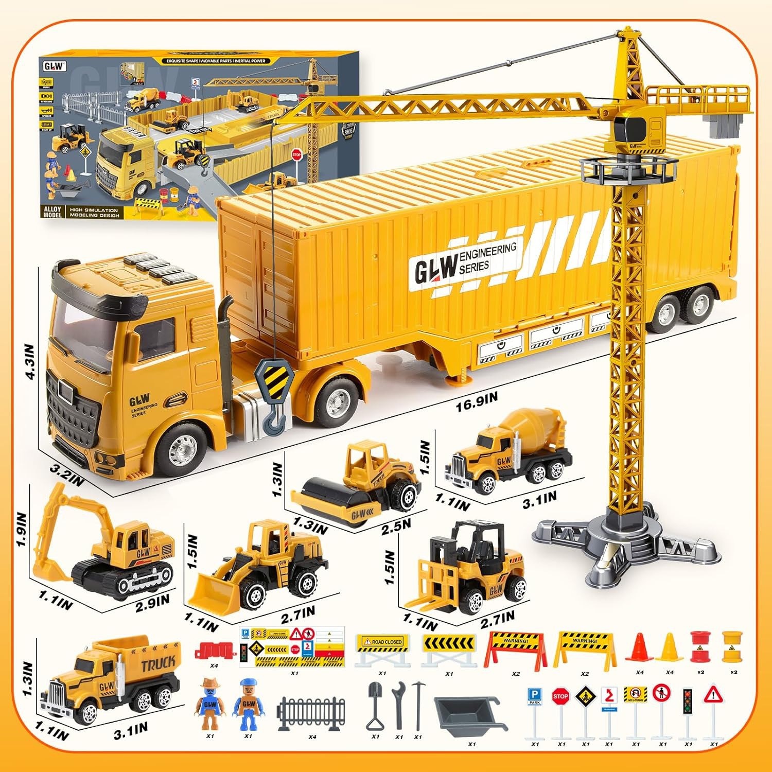 1:55 engineering vehicle 7-piece yellow large accessory bag + map [color portable box]]
