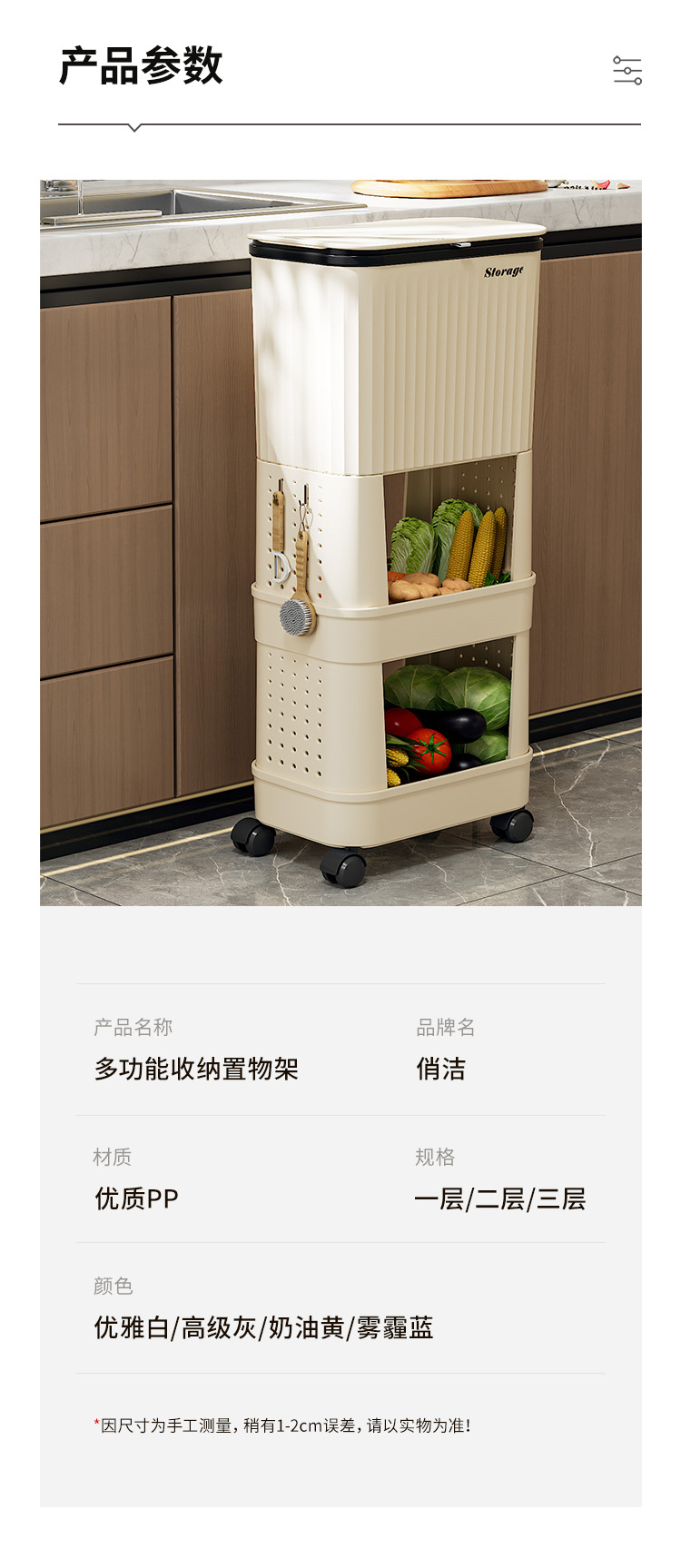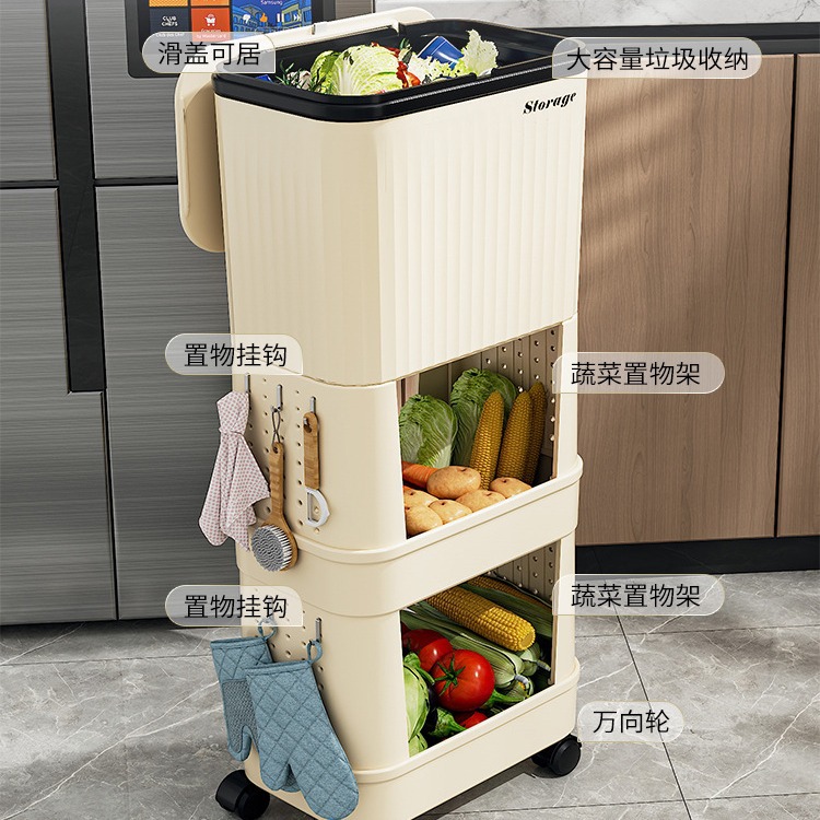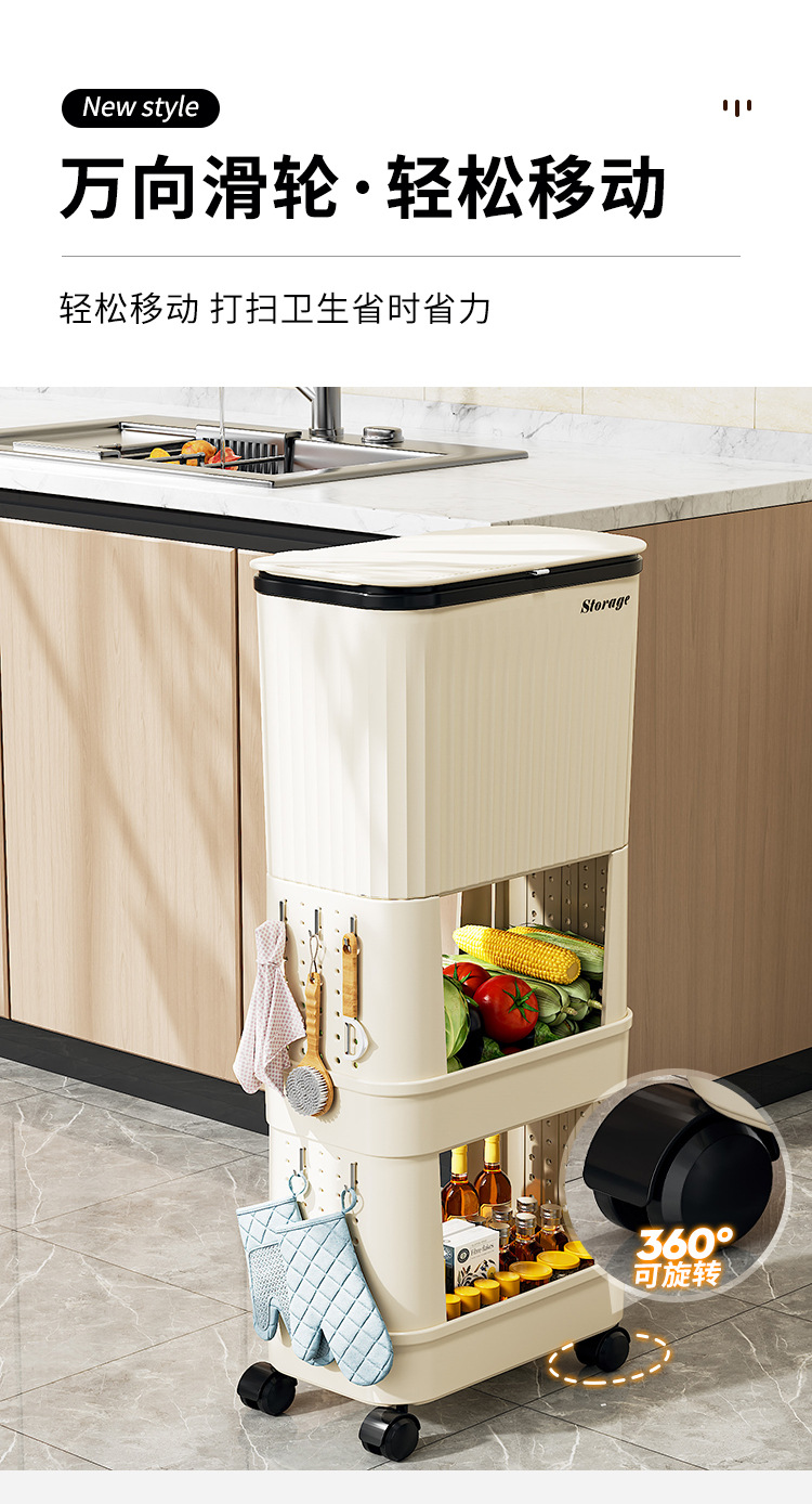 cream yellow [three layers] (including 4 wheels, a roll of garbage bag (20 pieces)
