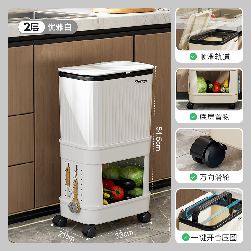 elegant white [two layers] (including 4 wheels, a roll of garbage bag (20 pieces)