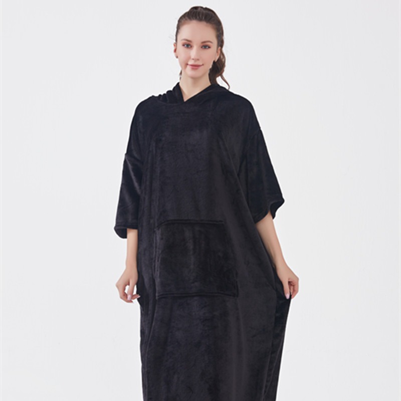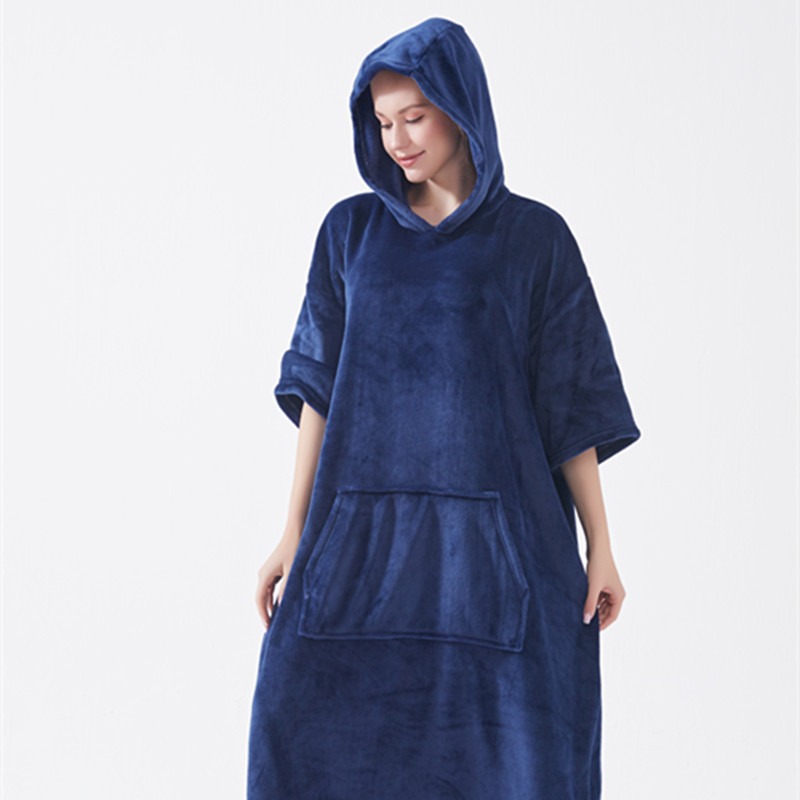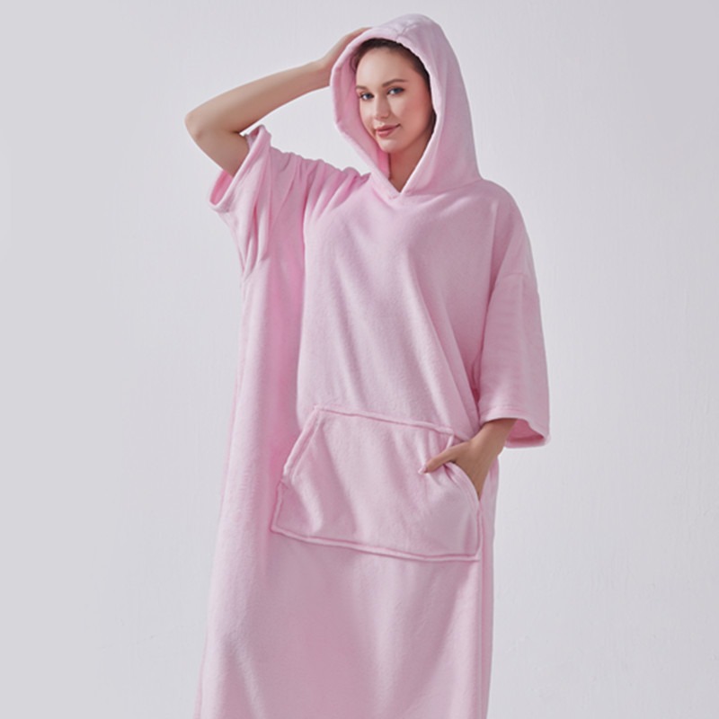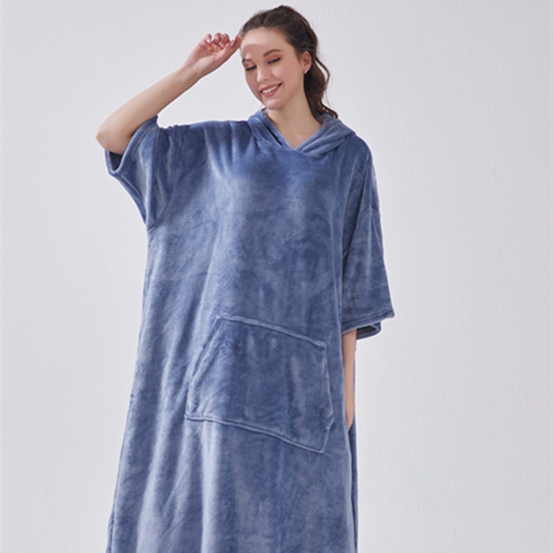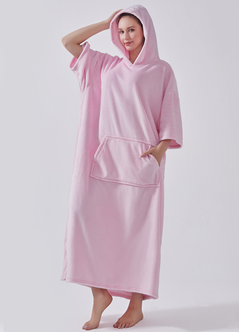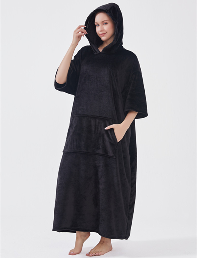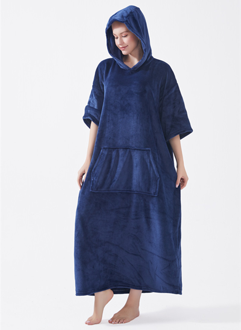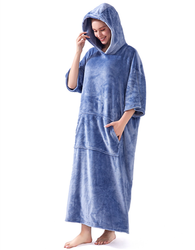 hooded solid color cold-proof clothes nightgown cross-border bathrobe autumn and winter thickening pajamas large long style flannel couple 中文版