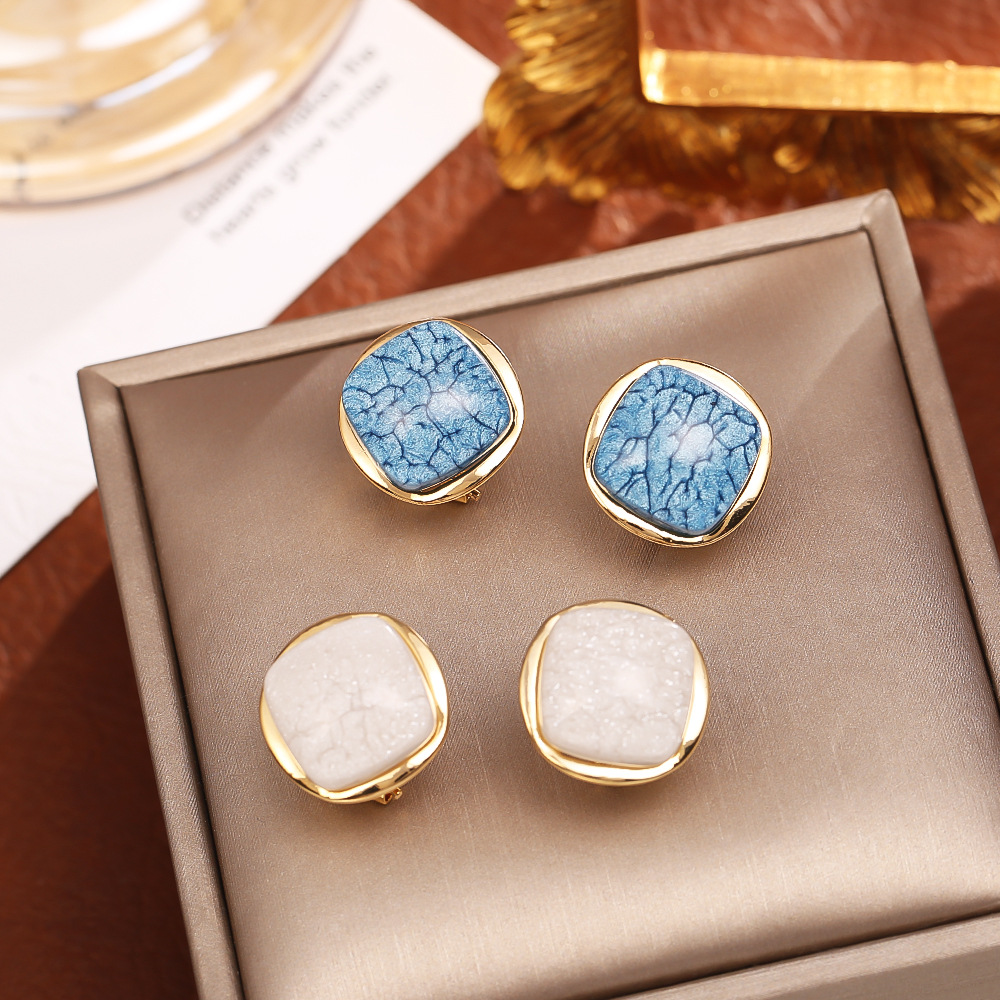 white ice crack ear studs (sterling silver needle)