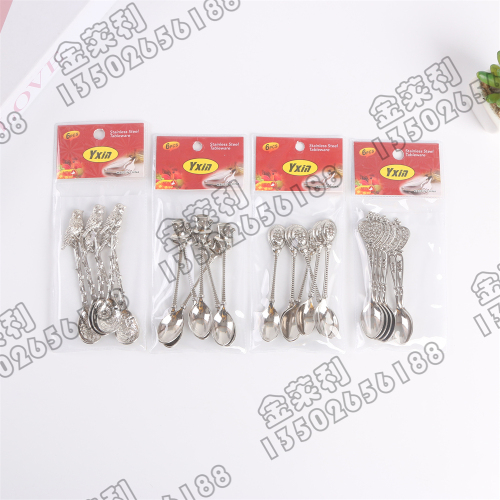jinlili retro dessert spoon embossed stainless steel western food tableware spoon high sense fruit fork coffee spoon
