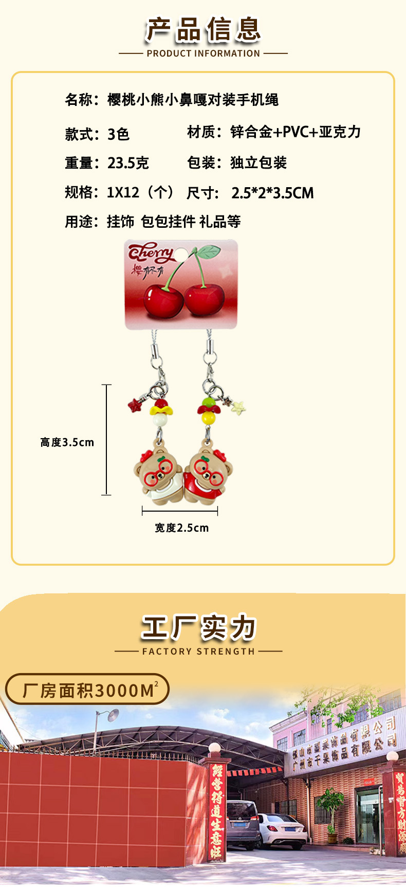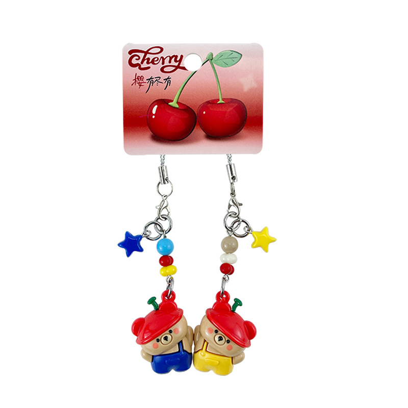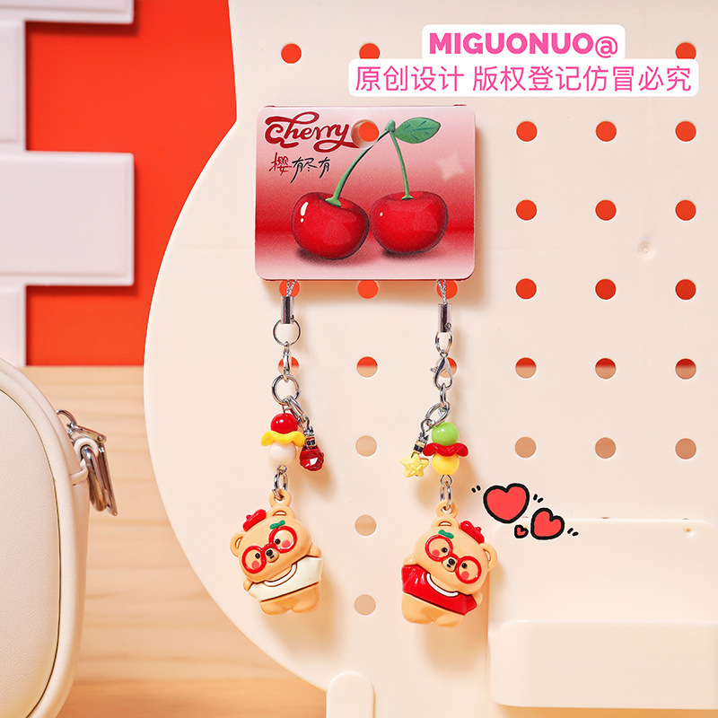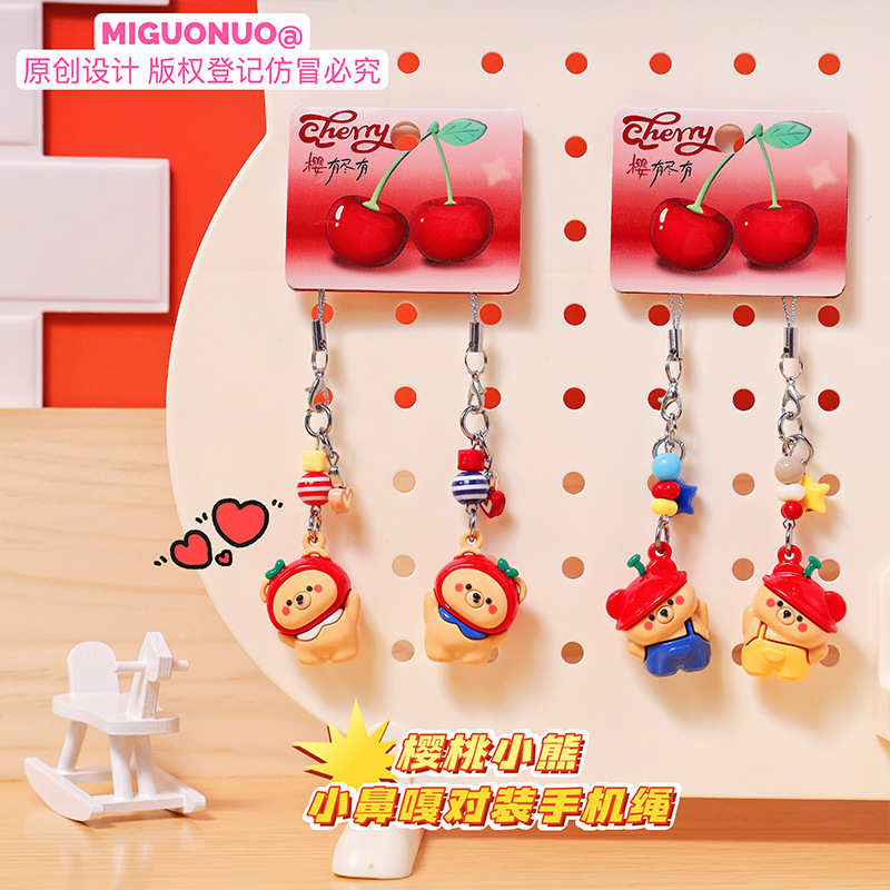original cherry bear small nose ga pair mobile phone strap cartoon cute couple creative schoolbag pendant keychain 中文版