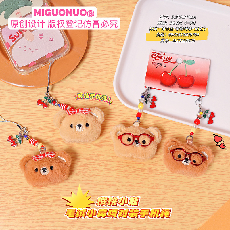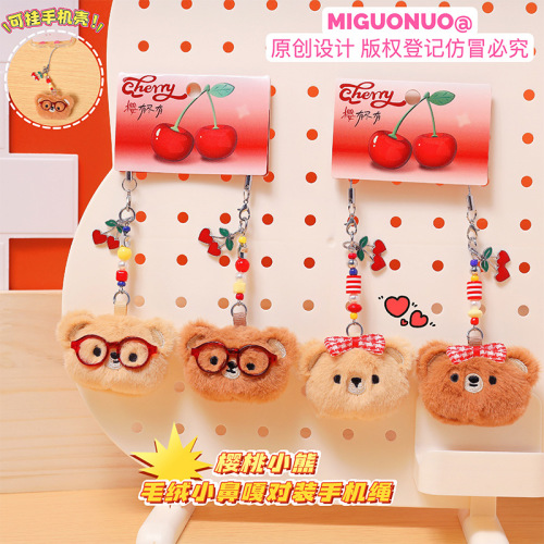 cherry bear plush small nose ga pair mobile phone strap soft and adorable cute cartoon couple schoolbag pendant keychain 中文版