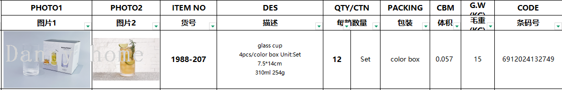 danny home borosilicate heat-resistance glass office water glass 中文版