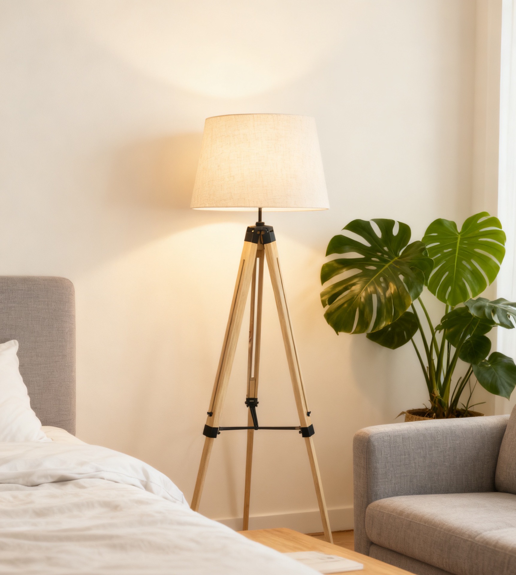 nordic minimalist sofa and tea table bedroom adjustable flexible tripod solid wood floor lamp modern light luxury lamps 中文版