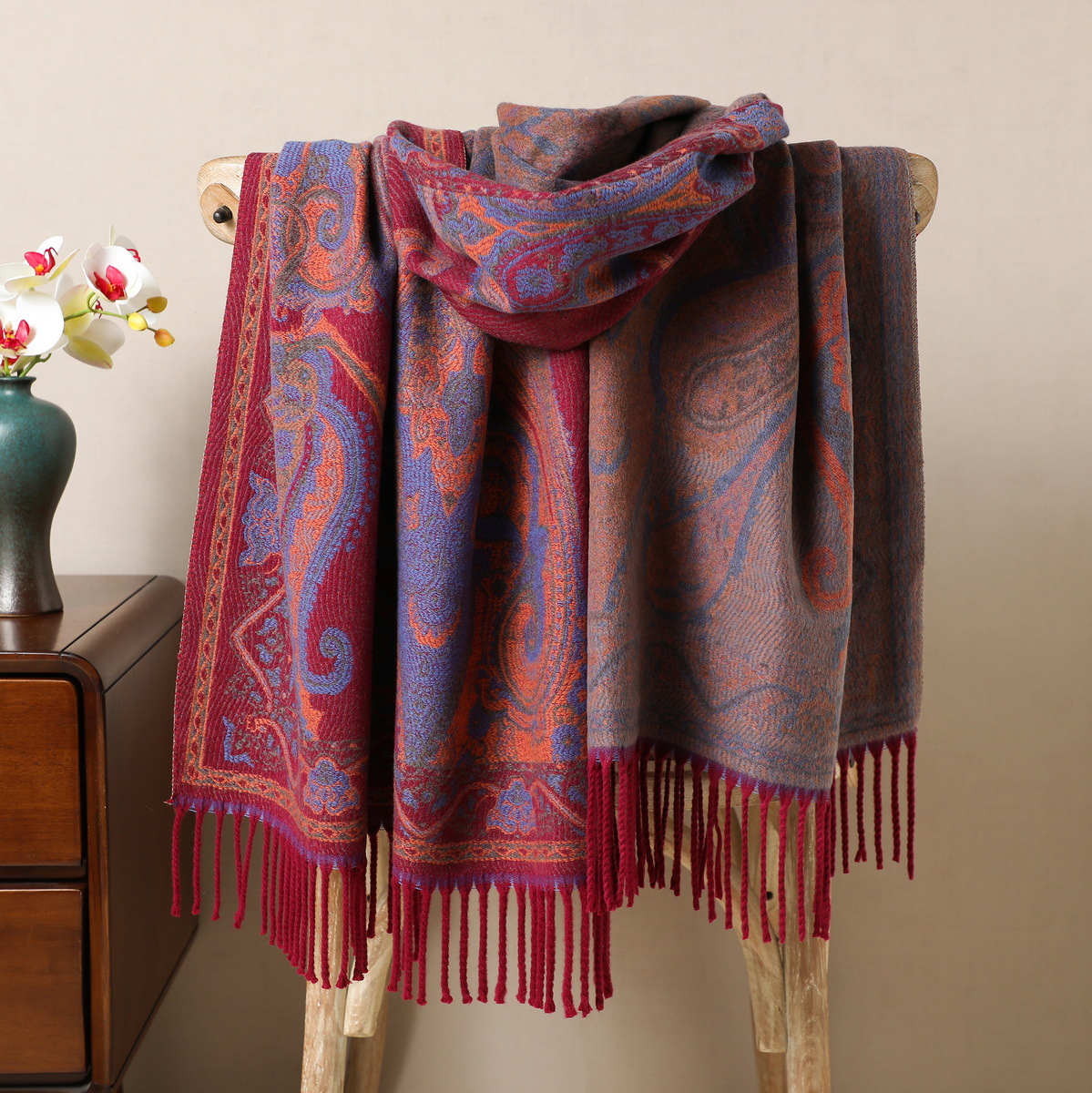 cashew jacquard wine red and blue