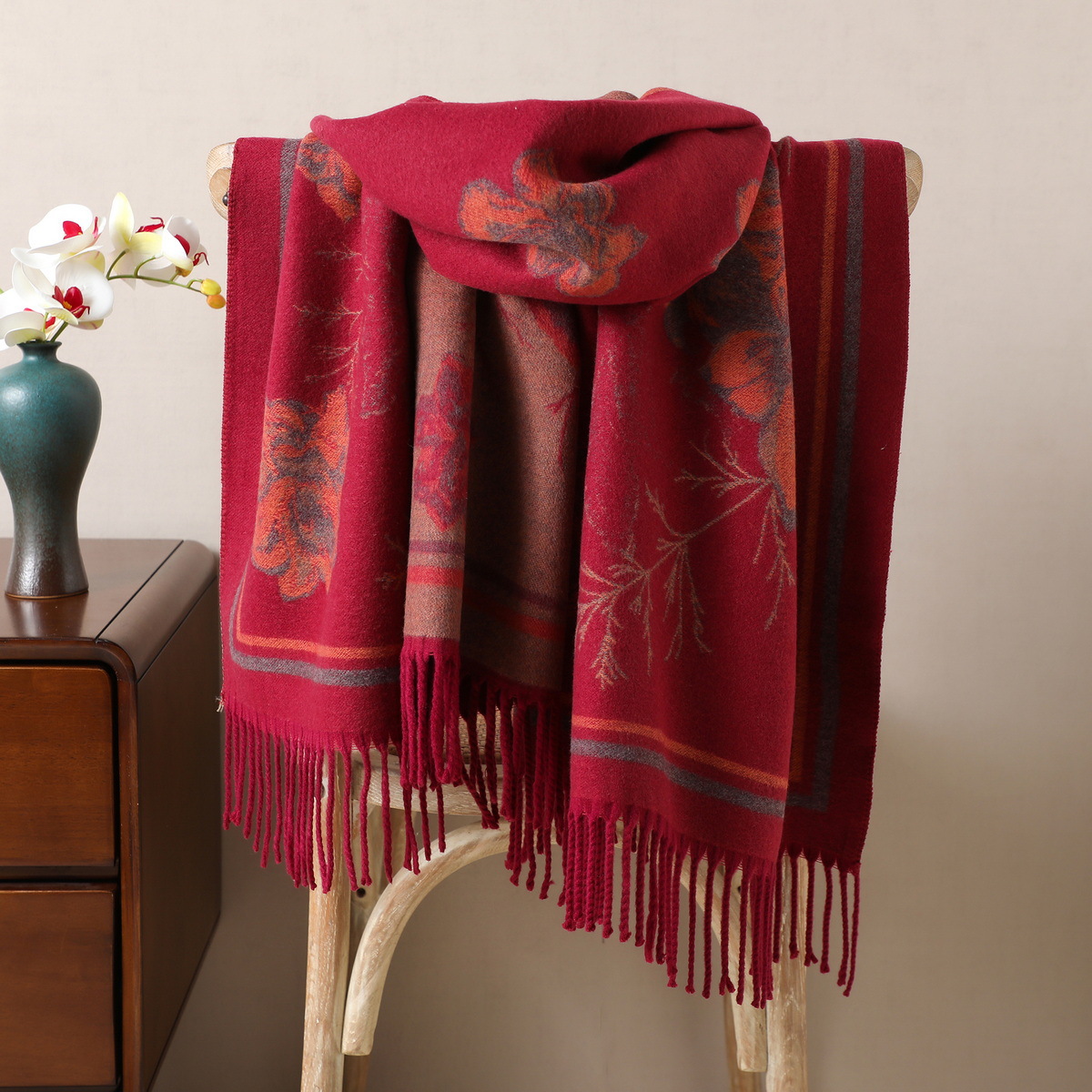 cashmere-like jacquard weave burgundy