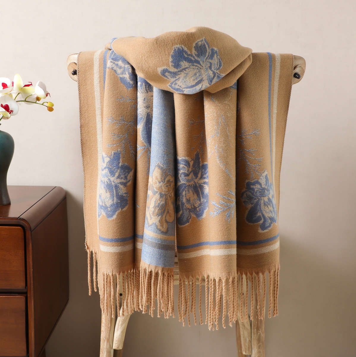 cashmere-like jacquard weave camel