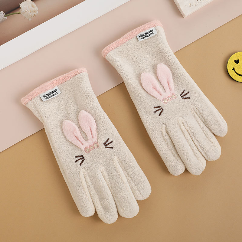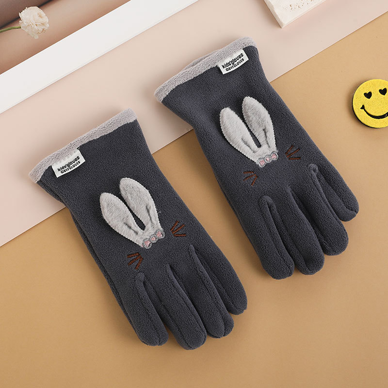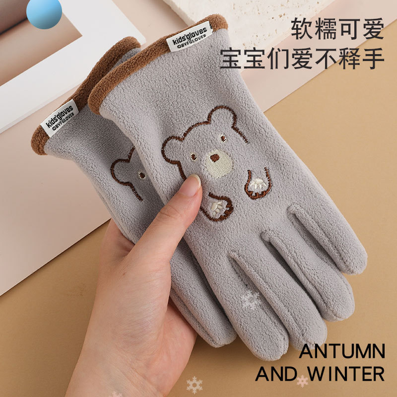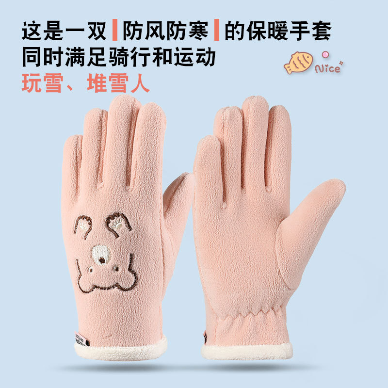 autumn and winter fleece-lined warm polar fleece outdoor riding sports windproof cold-proof cute five-finger gloves for boys and girls