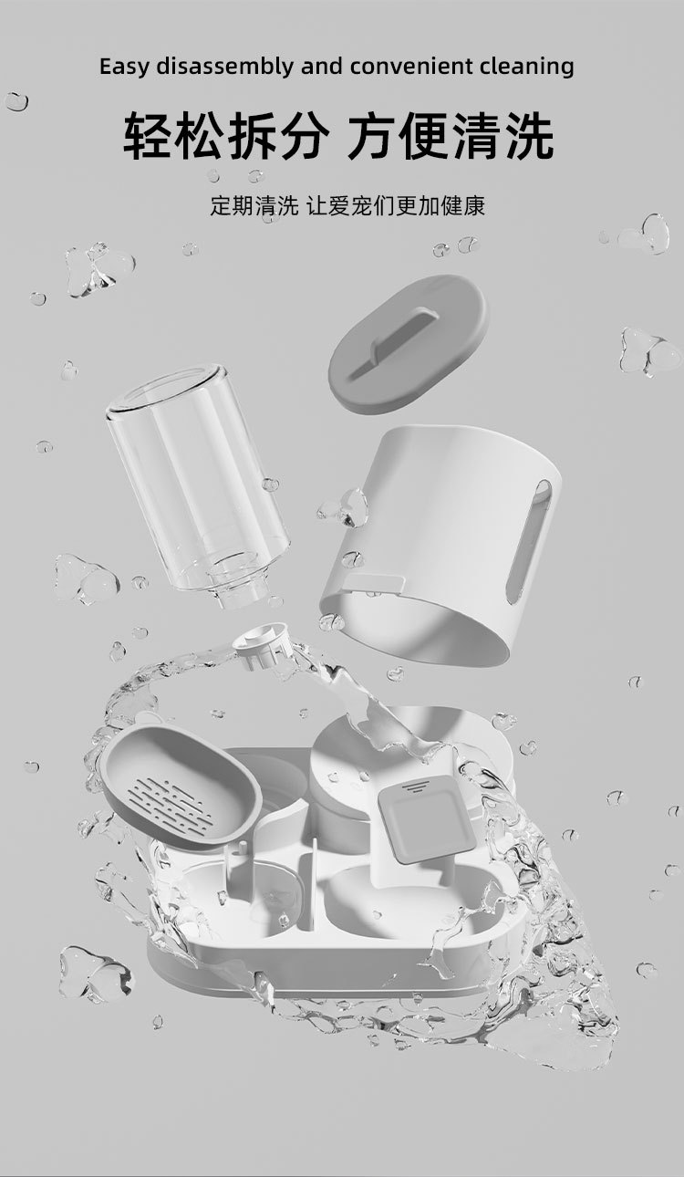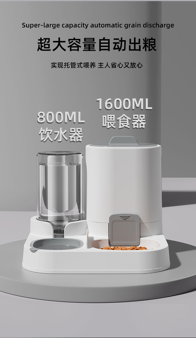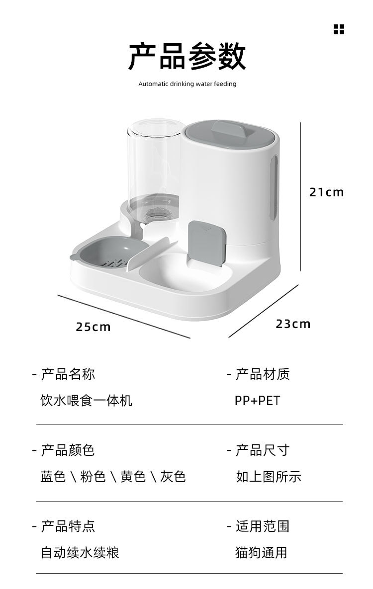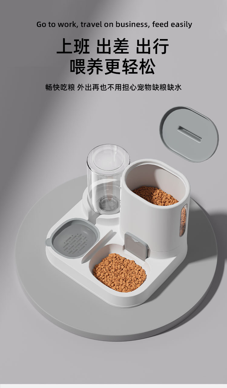 new pet feeding drink fountain large capacity integrated feeding drinking bowl food bowl stainless steel dog bowl 中文版