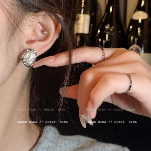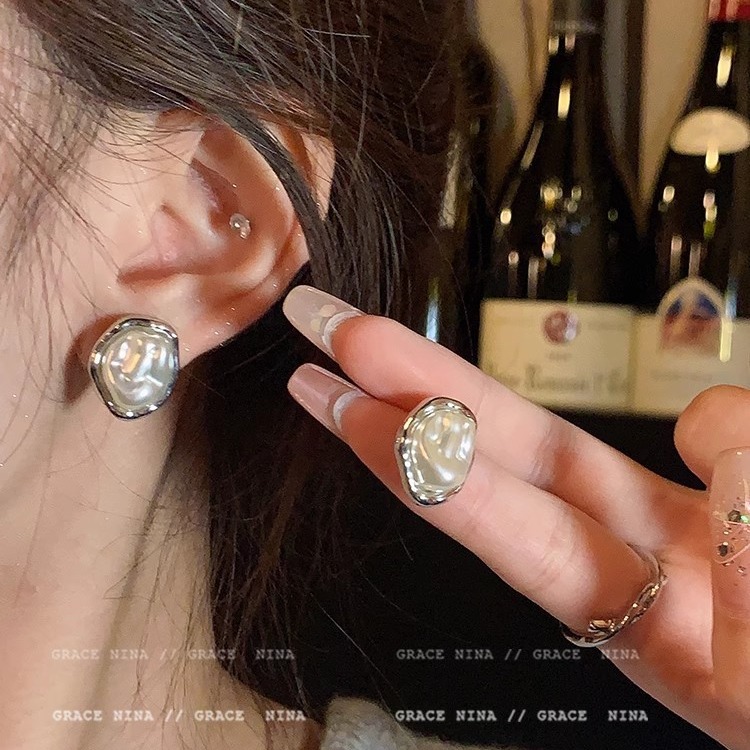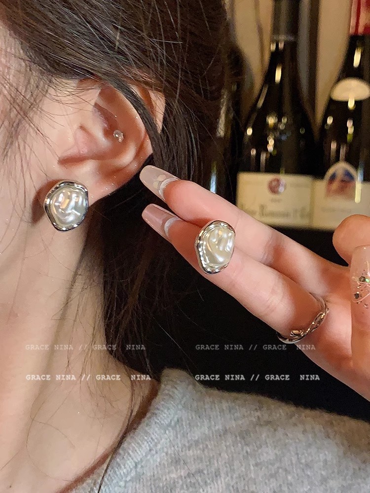 silver pearl stud earrings