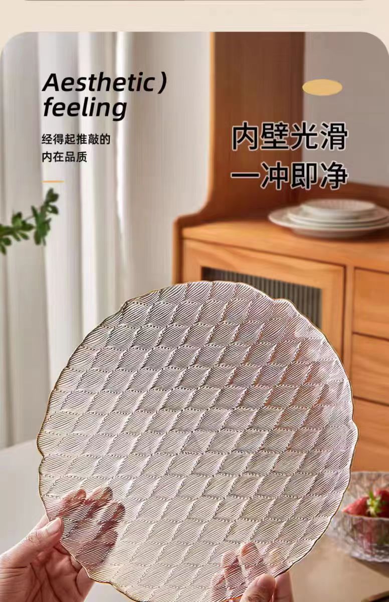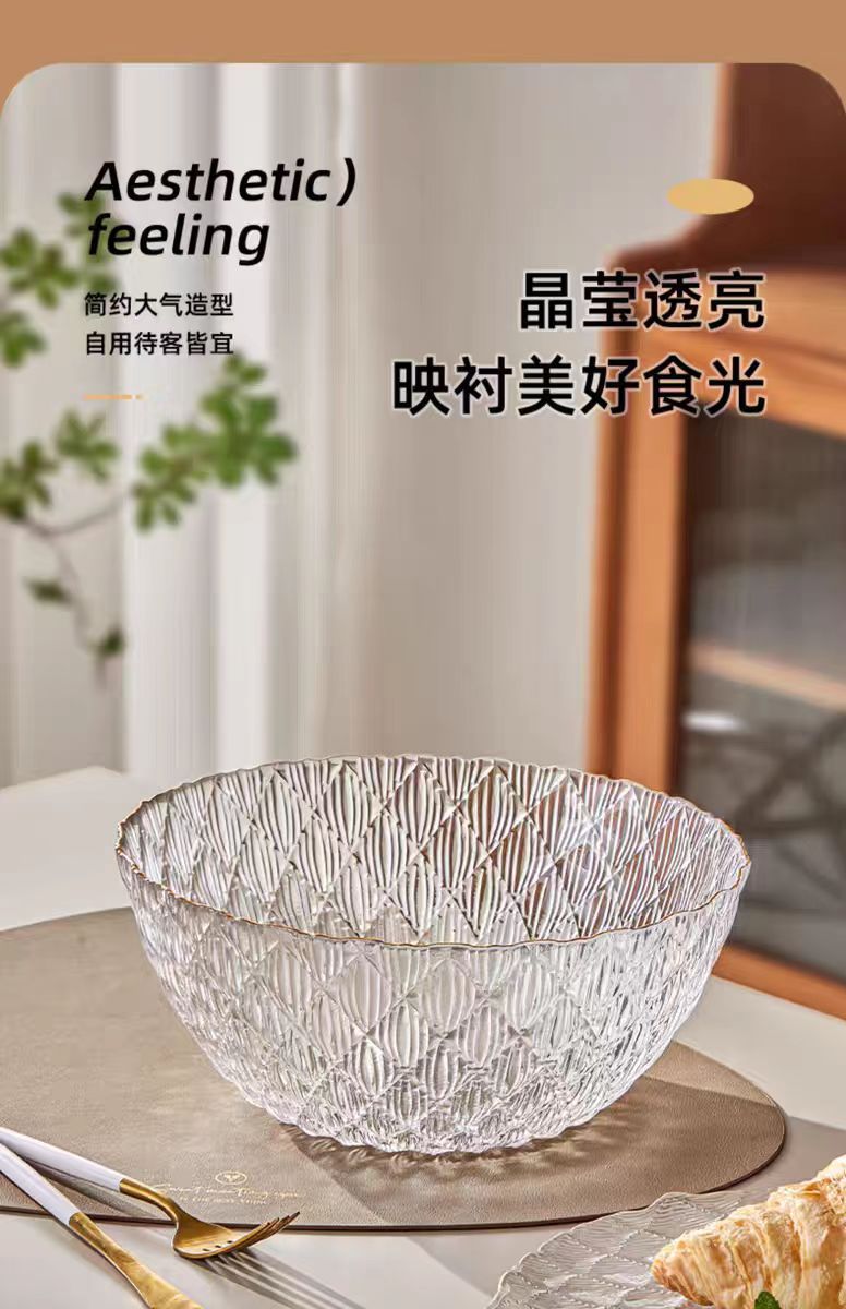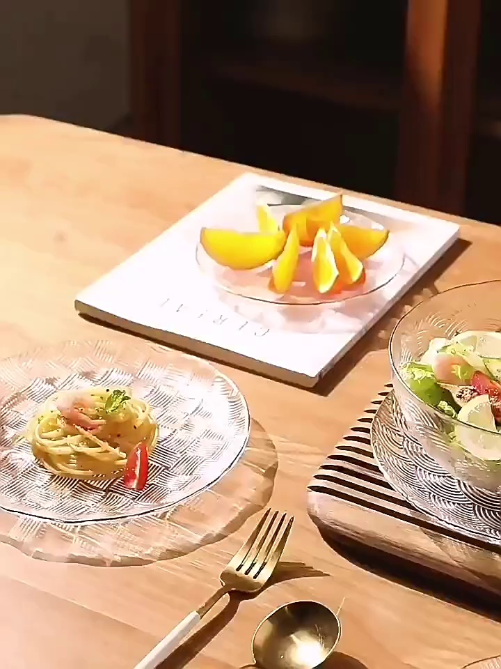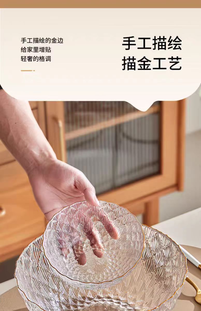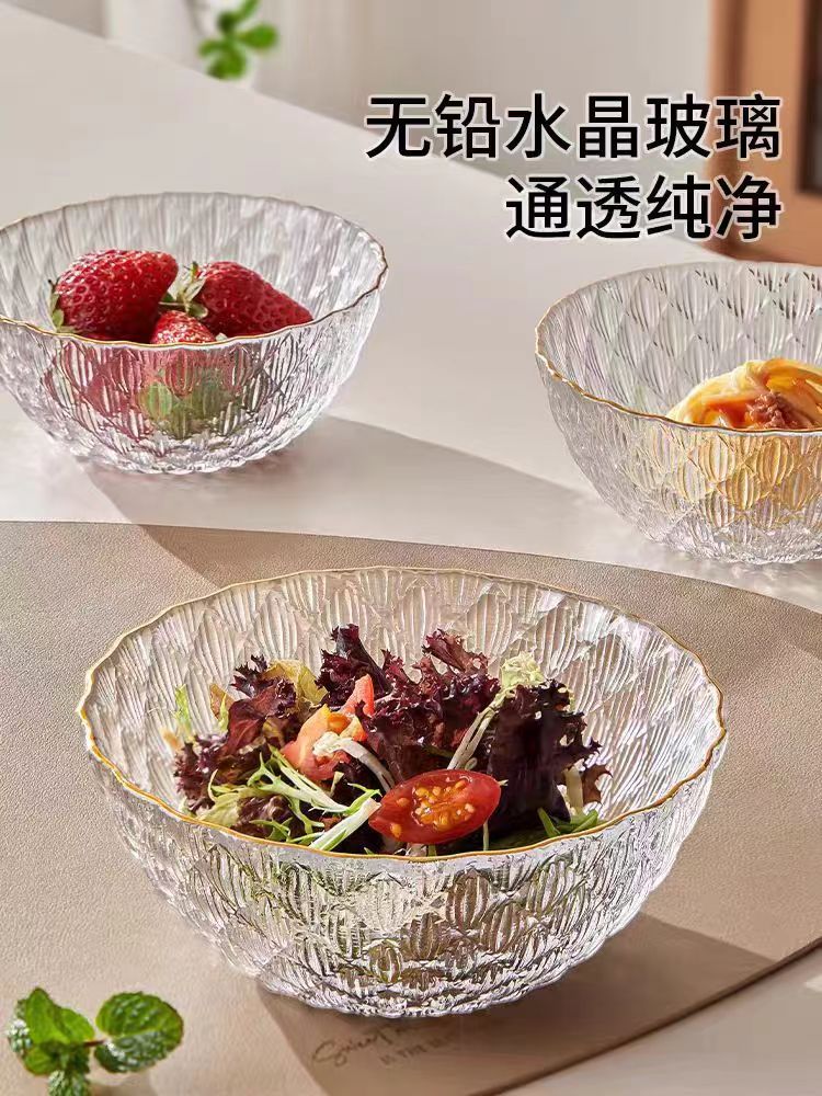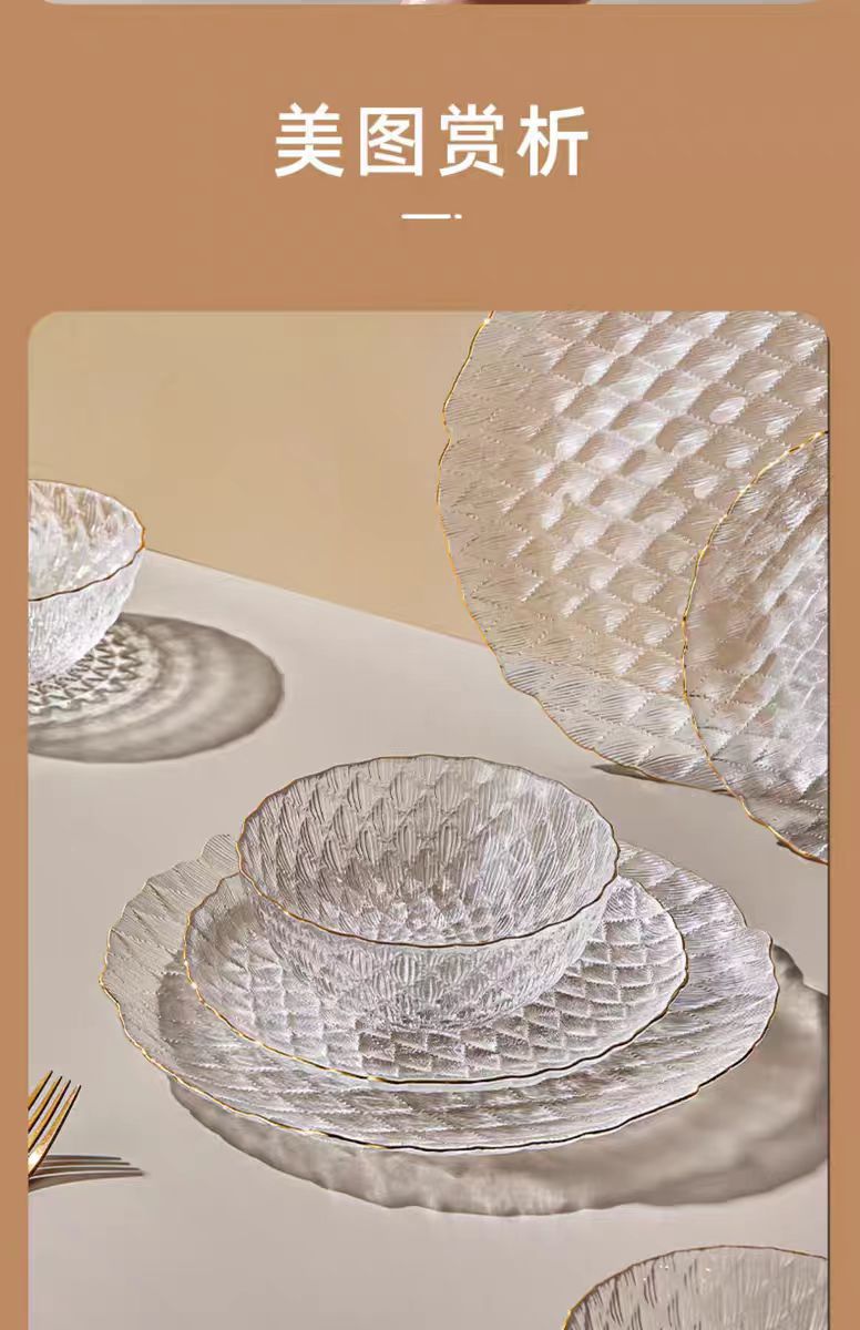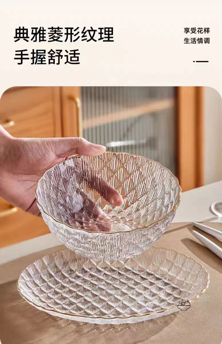 light luxury transparent glass diamond dishware set home living room bowl plate set high-grade good-looking fruit plate 中文版