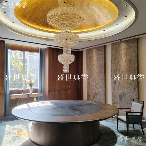 hotel solid wood electric table and chair club new chinese style large round table flat turntable electric dining table 中文版