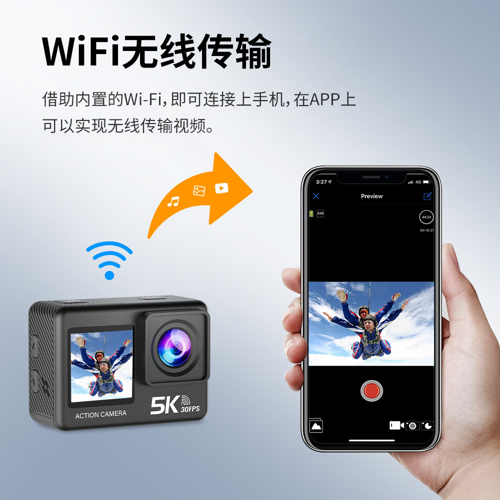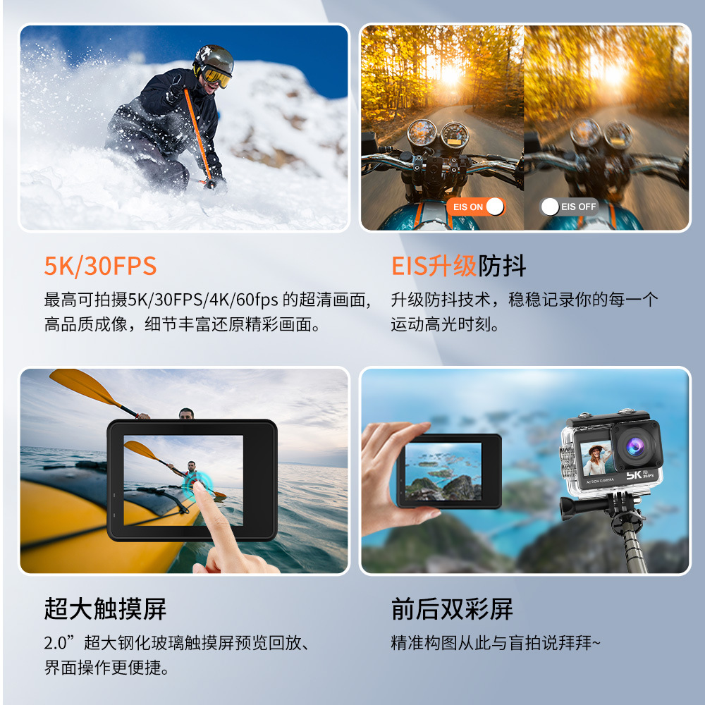| 录像分辨率 | 5K 30 FPS /4K 60FPS / 1920*1080P 120 FPS |