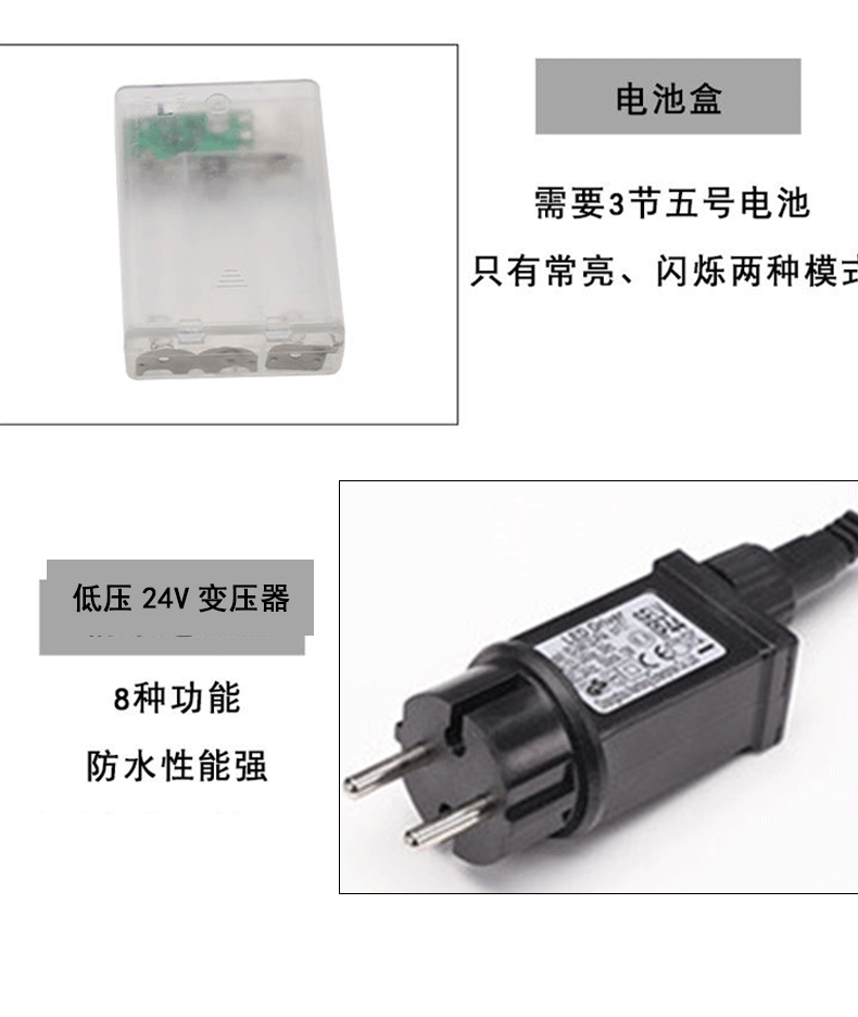 Battery model with three AA batteries. Shipping does not include batteries (battery model for outdoor use, it is necessary to take waterproof measures for the battery box to avoid water entering the box).