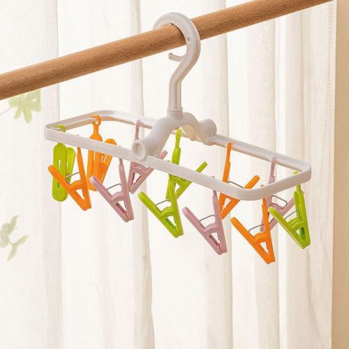 multi-clip hanger household drying socks rack children student dormitory foldable balcony wind and skid drying rack 中文版