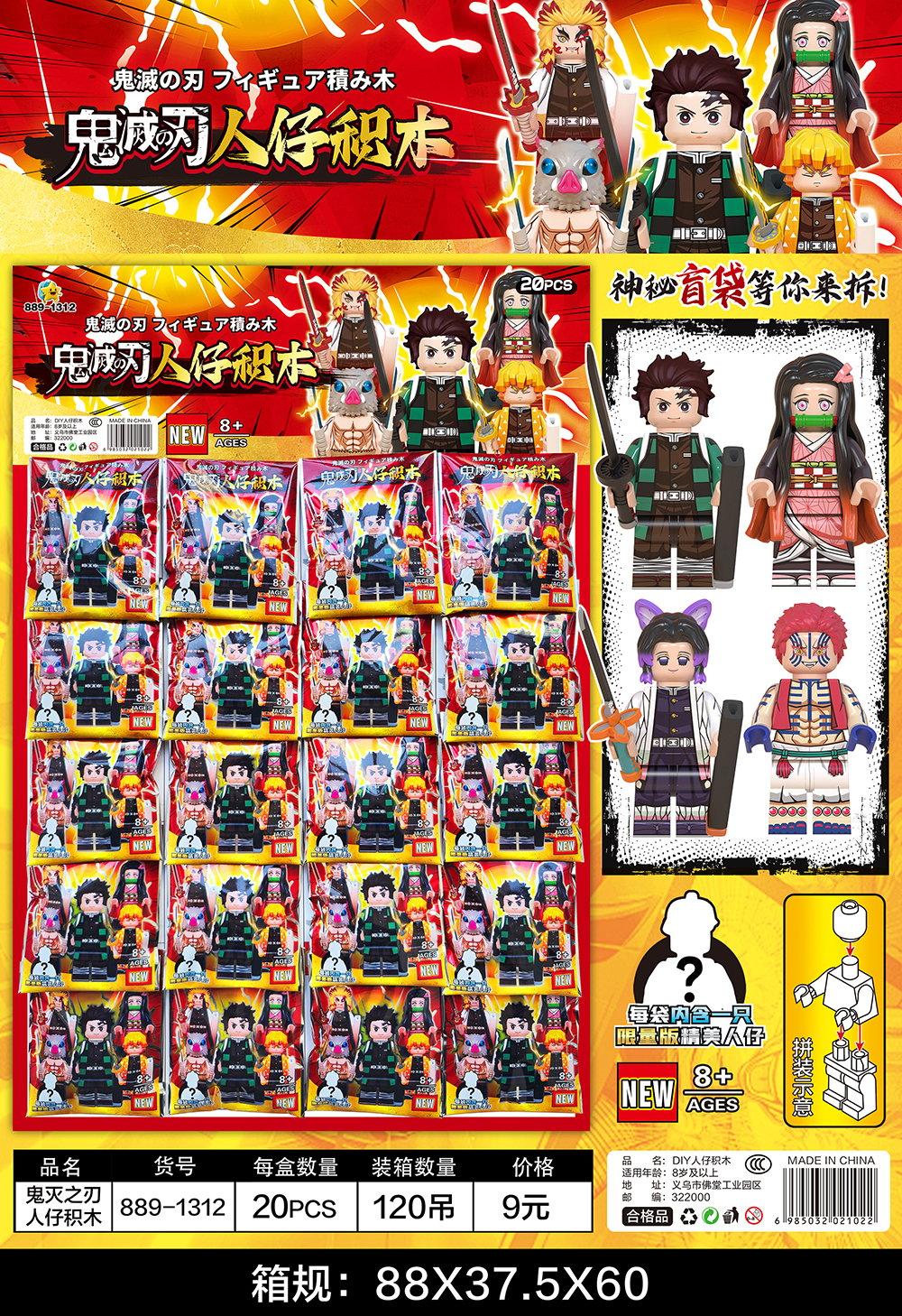 kimetsu no yaiba minifigures foreign trade factory wholesale compatible lego children's toy villain decoration set hot sale 中文版