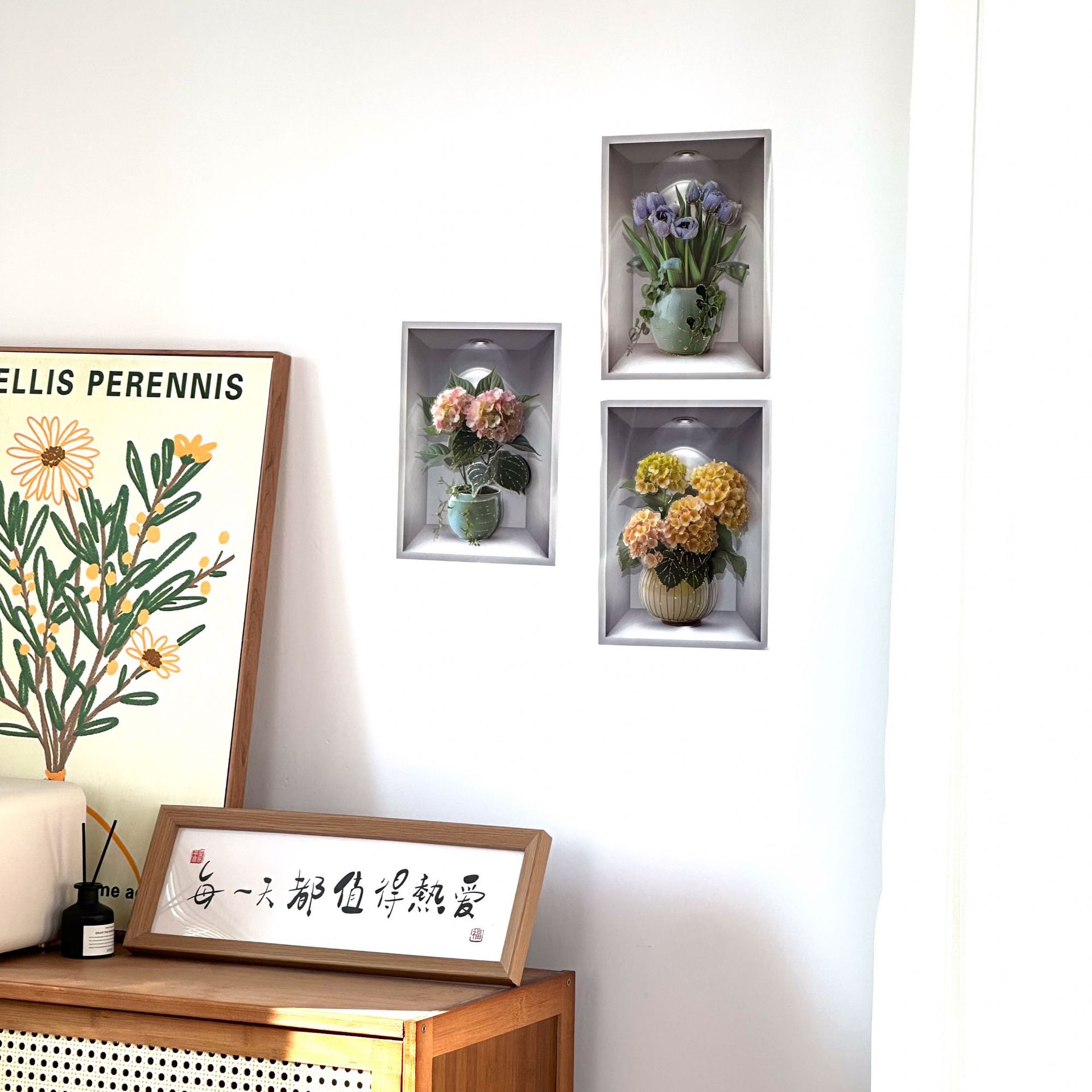 3d effect potted paste three and one painting aisle stairs decorative painting hotel dining room wall plant flower mural 中文版