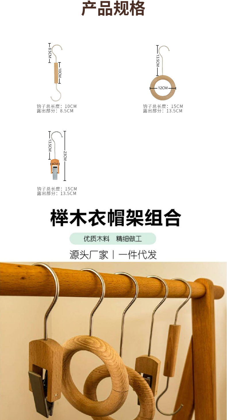 [wooden ring + s hook + u-shaped hat clip] three-piece suit