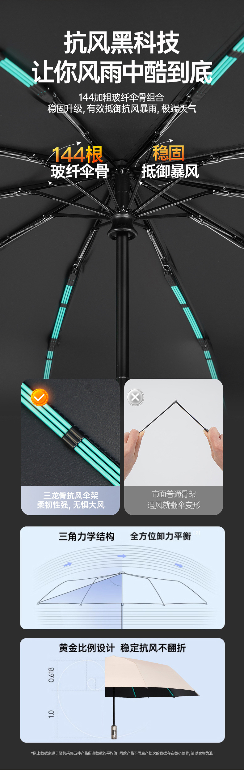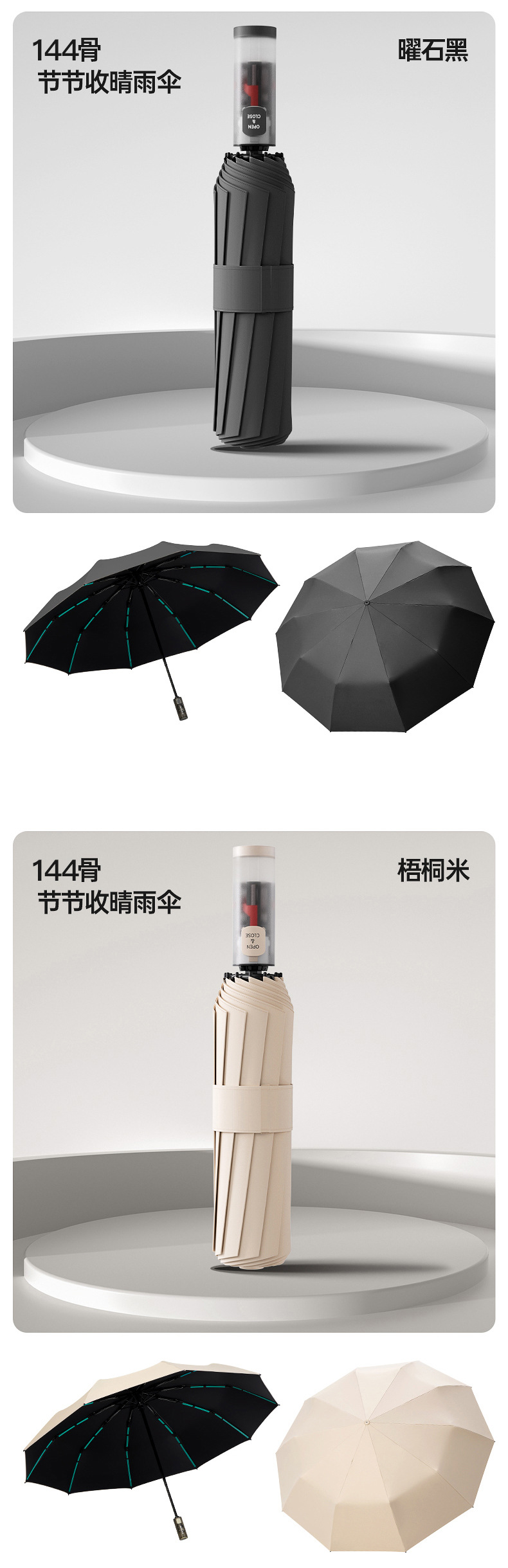 [three bone strengthening] 144 bone automatic [12 ×(3 × 4) glass fiber wind resistant bone] xuan ink black