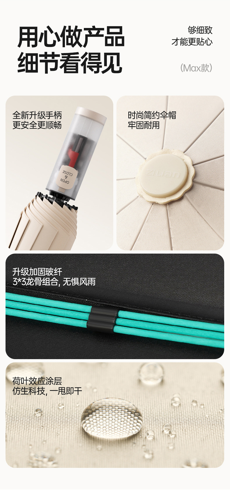 [knot collection anti-rebound] 36 bones automatic [12 ×(2+1) glass fiber wind resistant bones] cloud velvet rice