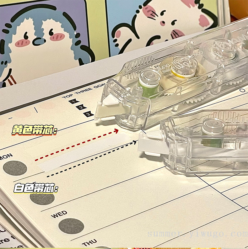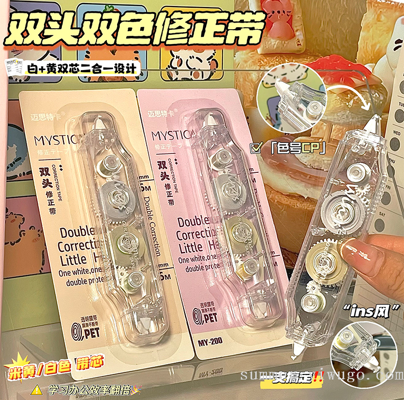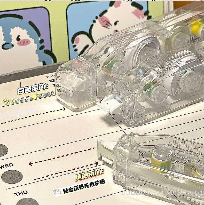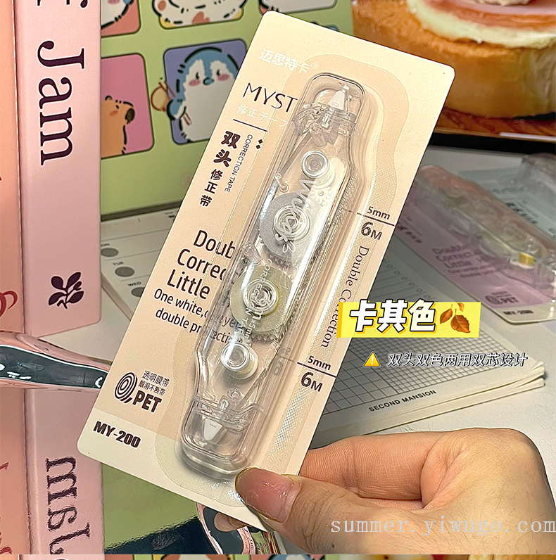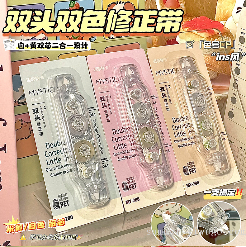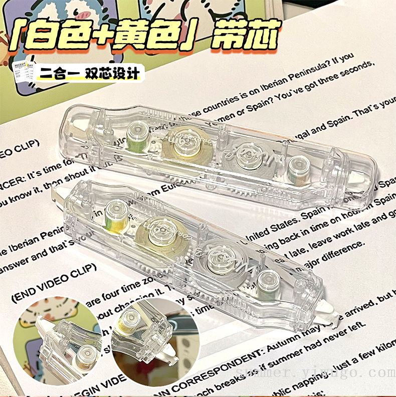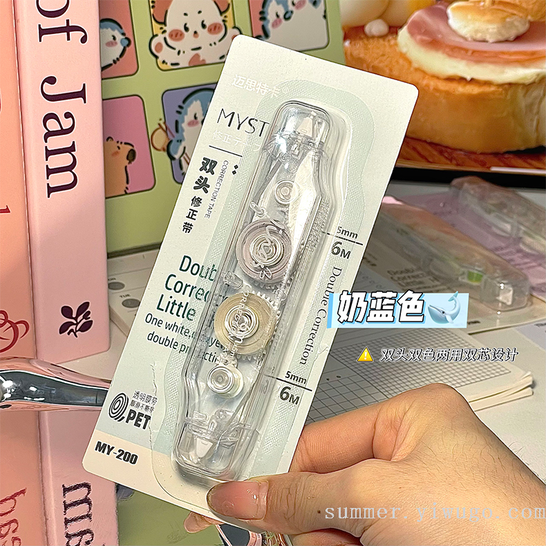 ins good-looking correction tape double-headed two-color correction tape simple large capacity mute constantly changing student correction tape 中文版