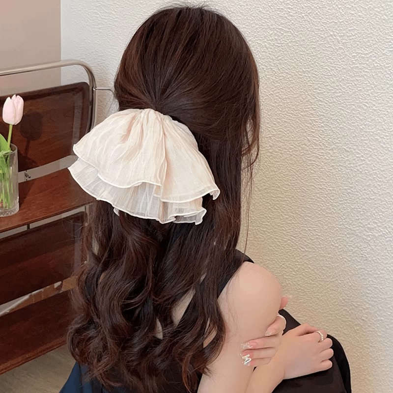 beige pleated oversized hair ring
